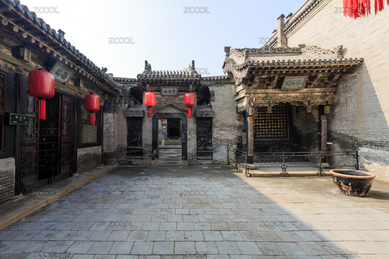 中国山西省祁县乔家堡村乔家大院园林建筑
