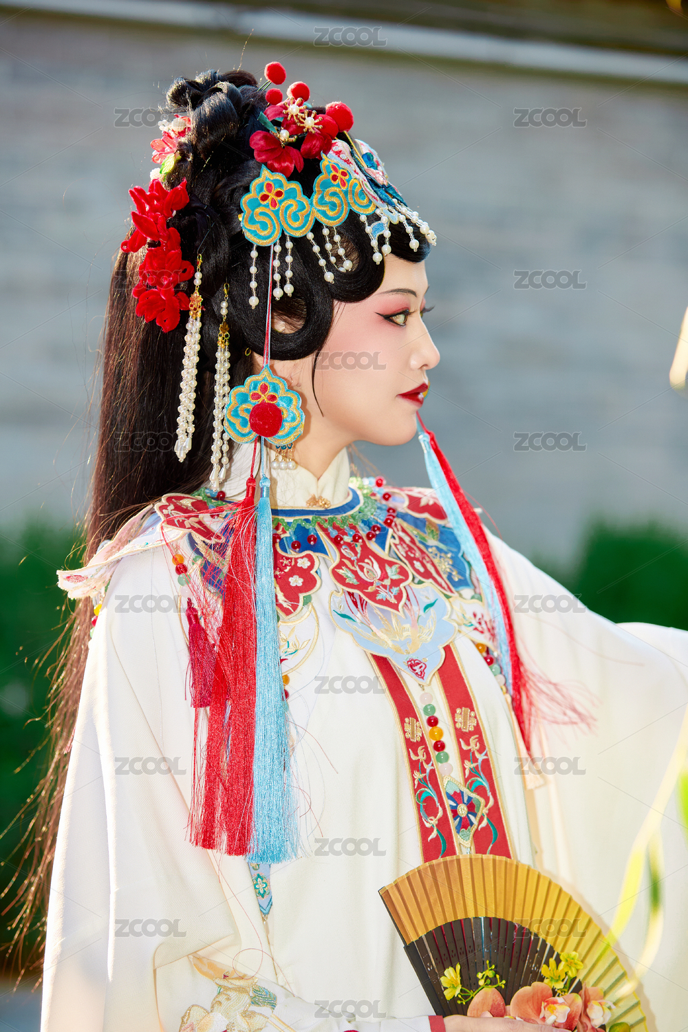 身穿戏曲服饰妆容手持工艺扇的中国美女