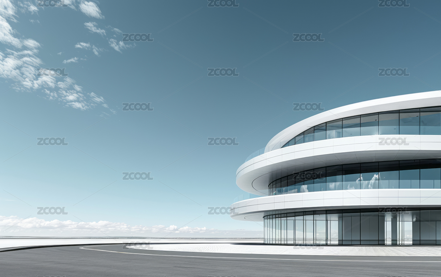 弧形建筑旁的道路