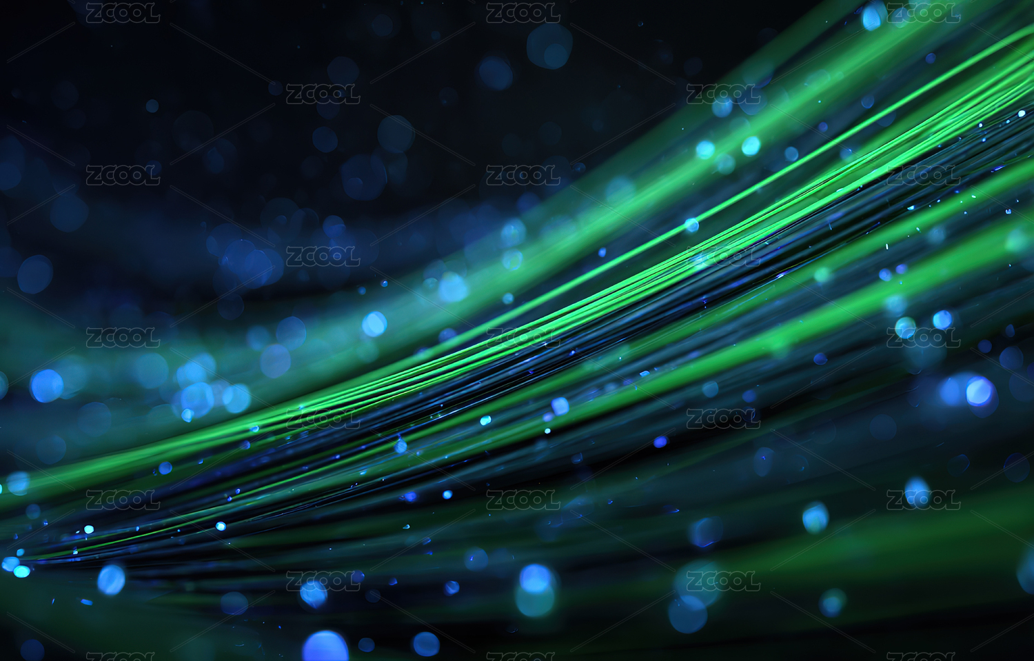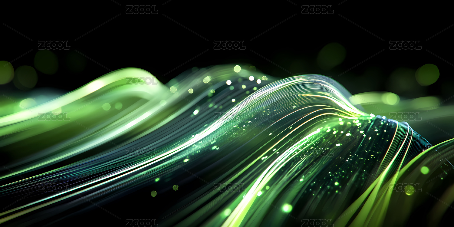 抽象霓虹灯的绿色发光几何线条3D渲染