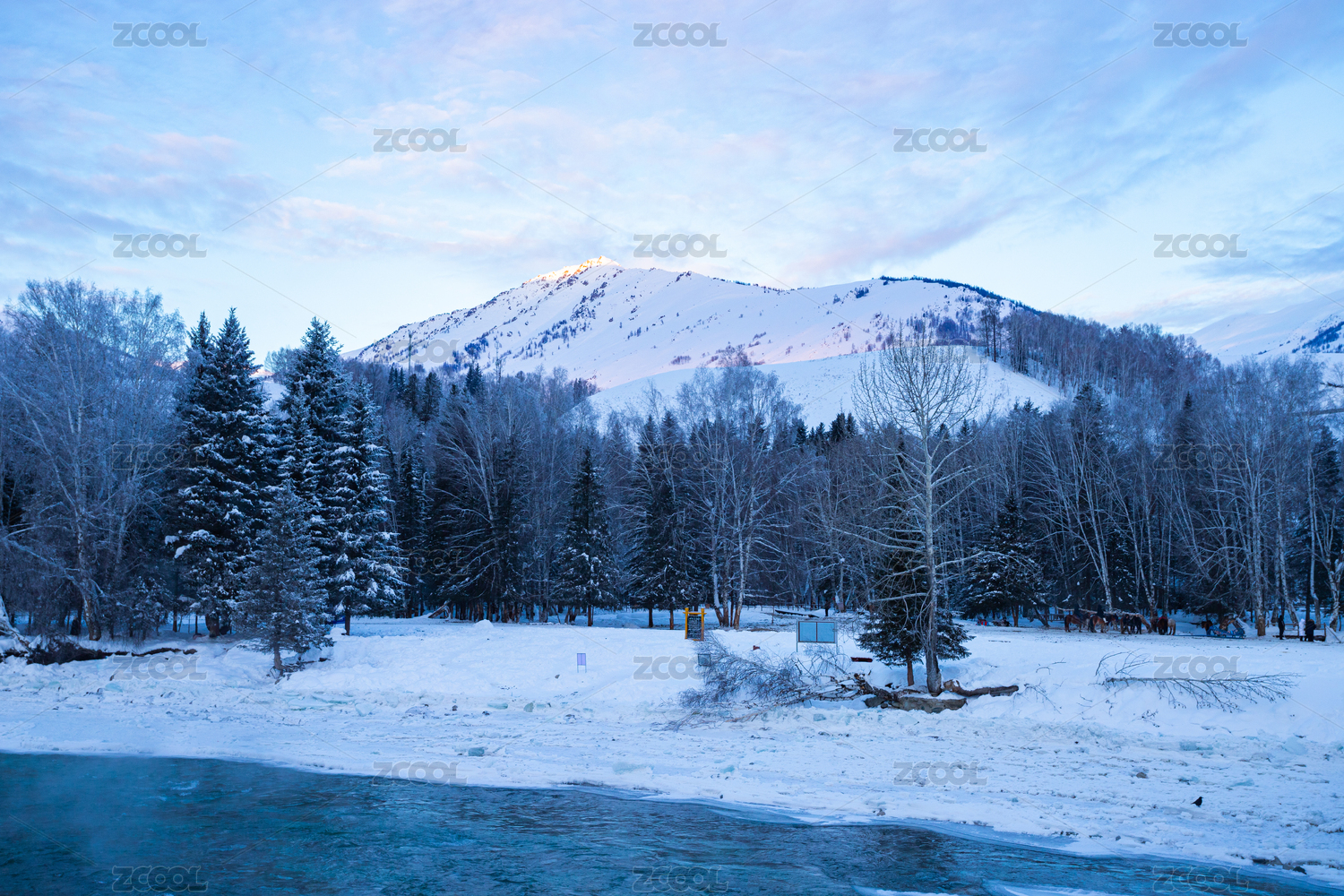 中国新疆阿勒泰喀纳斯湖神仙湾冬季雪景