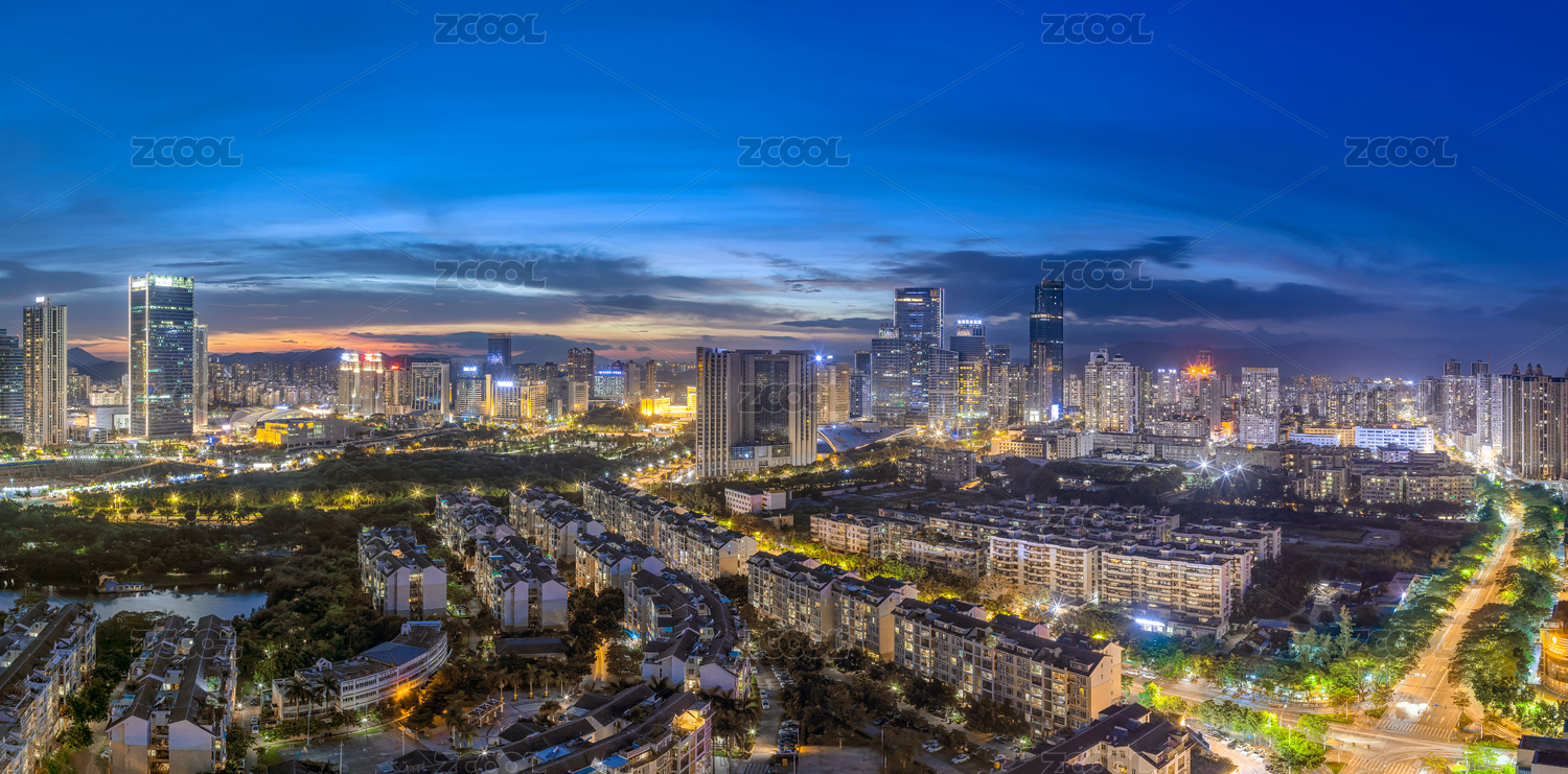 航拍江苏无锡城市建筑景观全景大画幅夜景