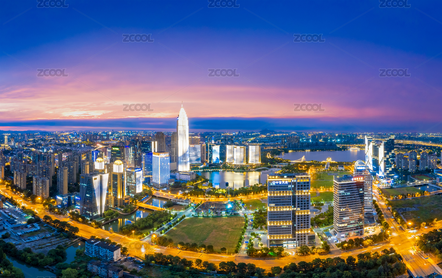 无锡,城市,夜景,江尖公园,公园,航拍,晚上,梁溪河,CBD,江苏