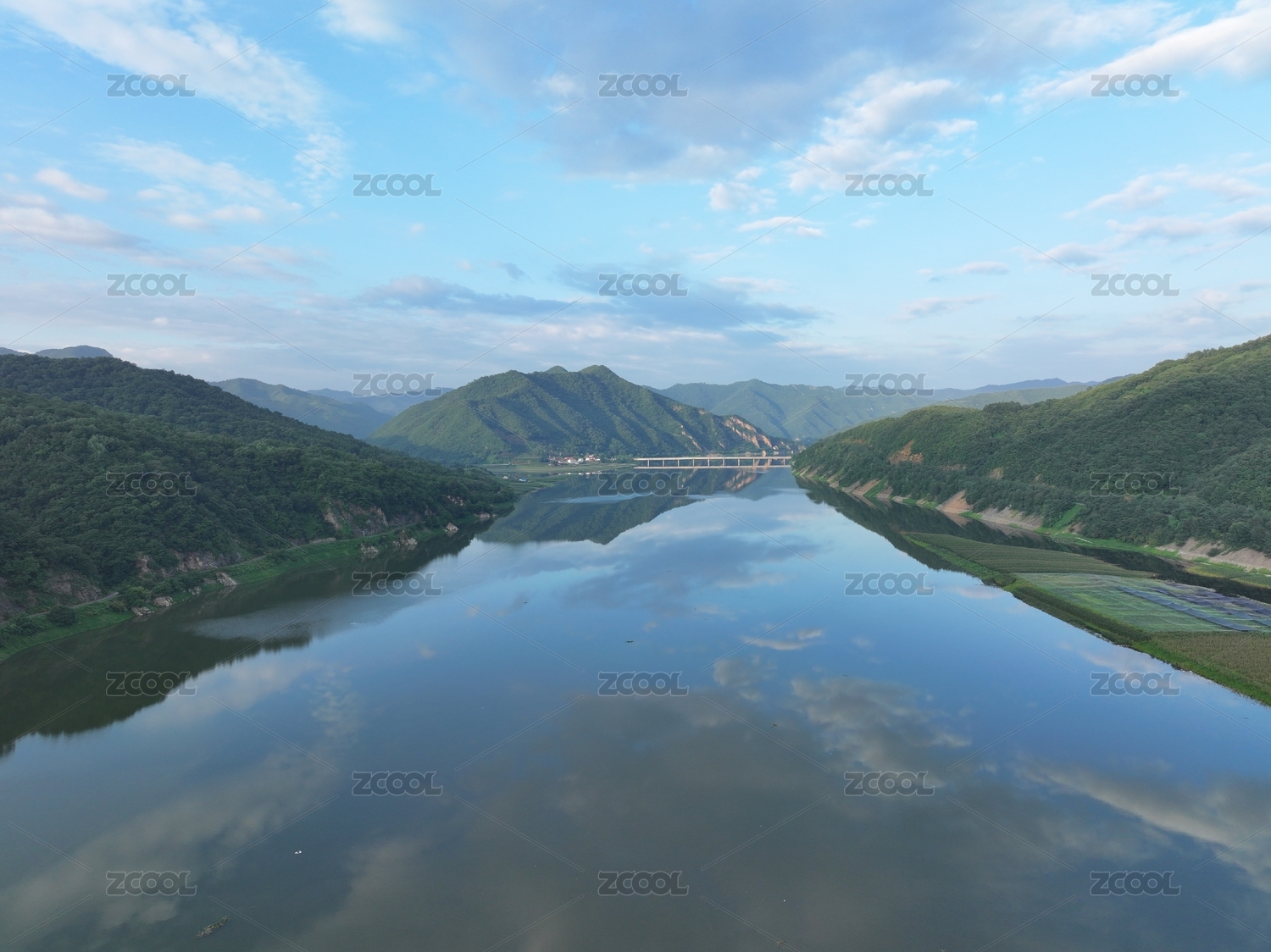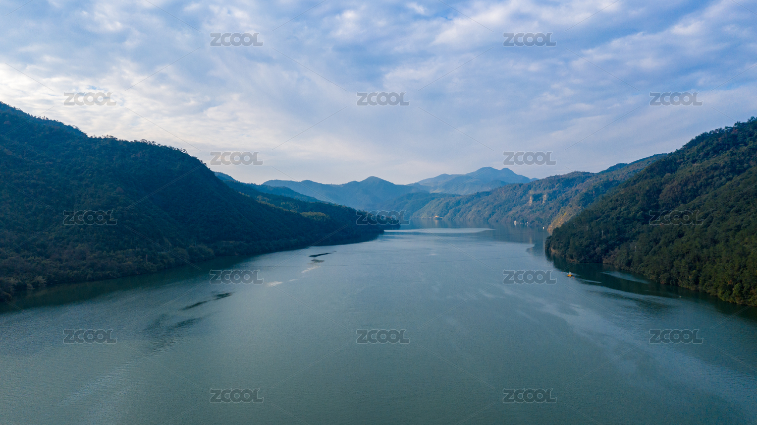 晴朗蓝天下的广东韶关始兴山口大坝水库