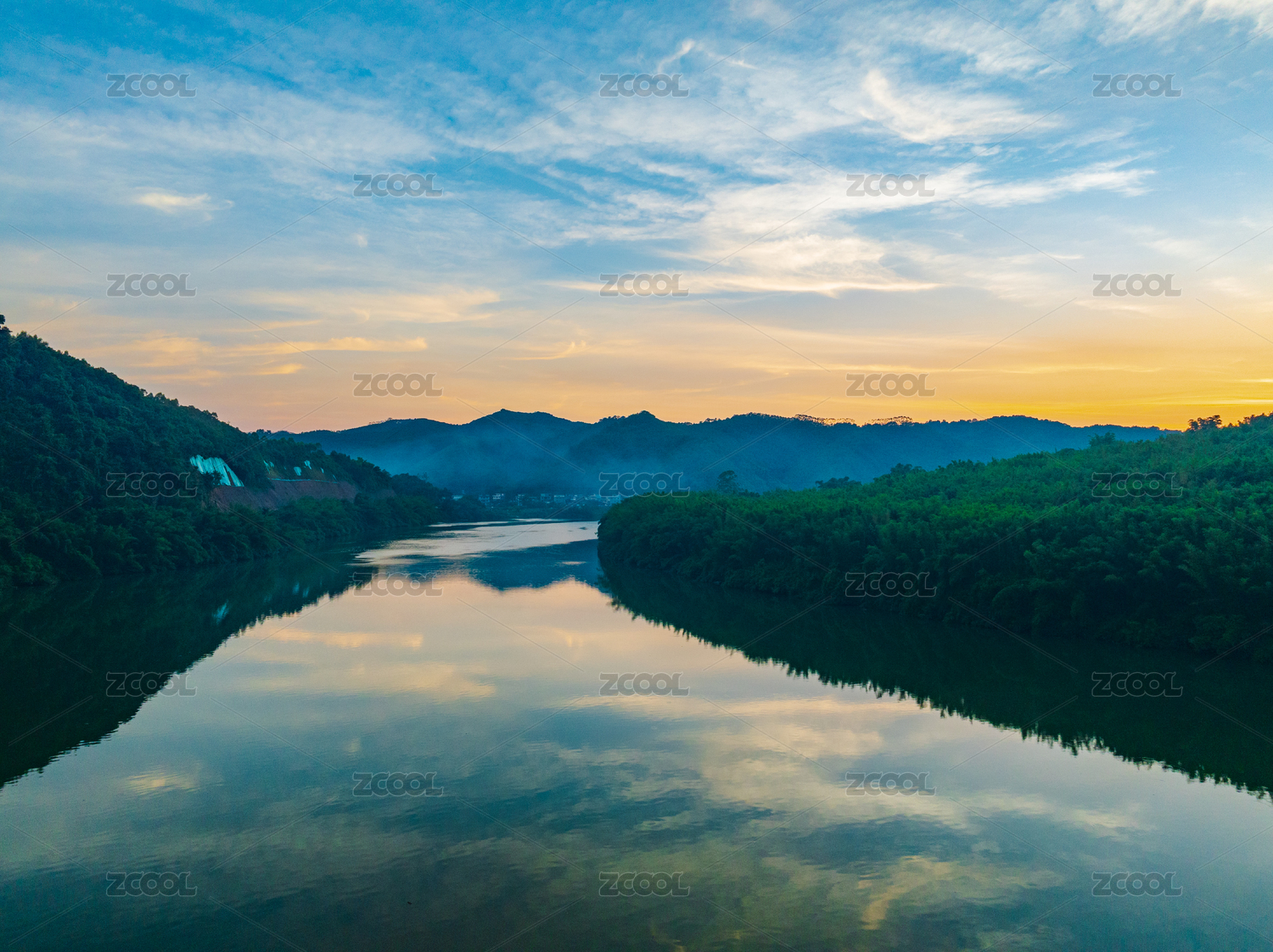 广东肇庆封开贺江日落航拍美景