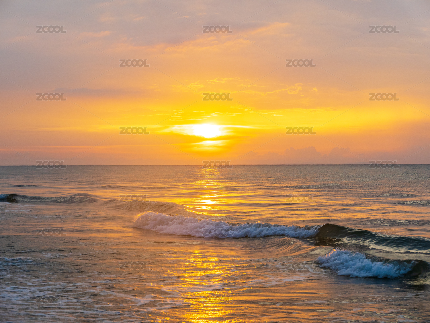 中国广东省湛江市东海岛中国第一长滩龙海天海滨浴场海滩沙滩上的海上日出朝霞