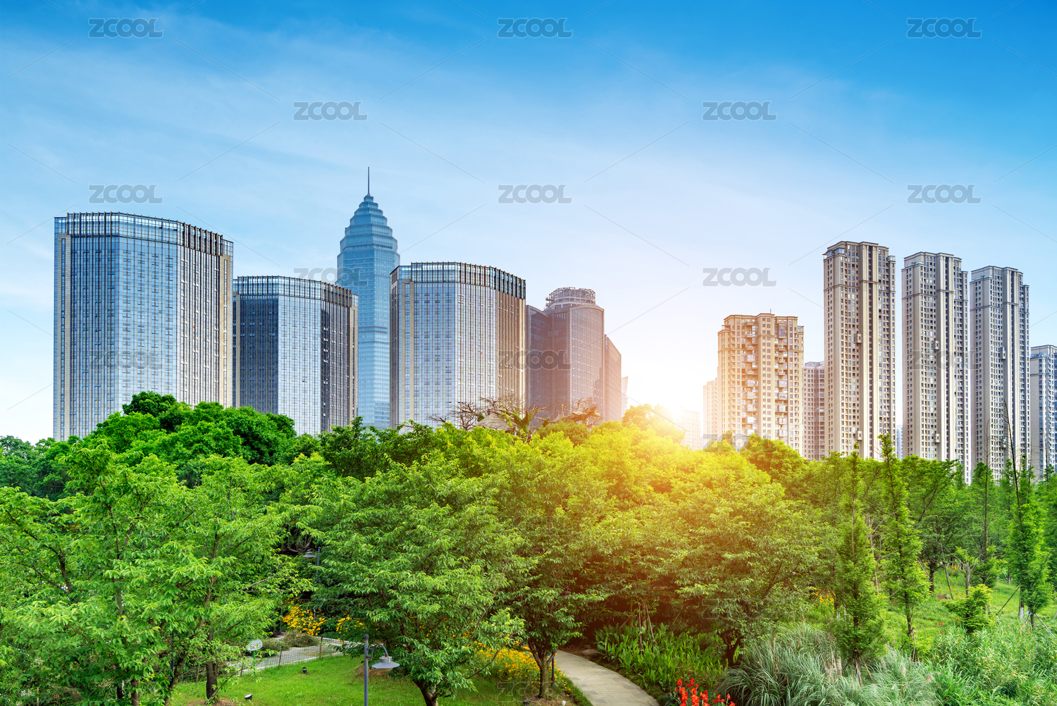 南昌,建筑,建筑物,高楼,摩天大楼,现代建筑,草坪,树林,植物,天空