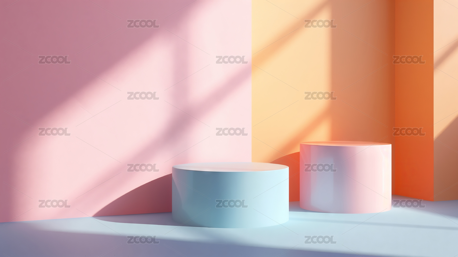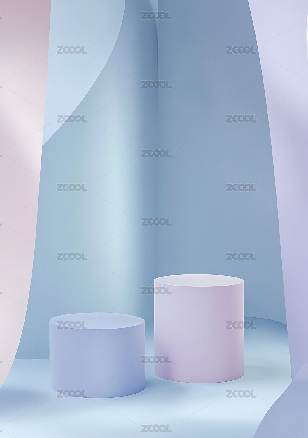 梦幻粉蓝渐变色展台底座电商3D效果图