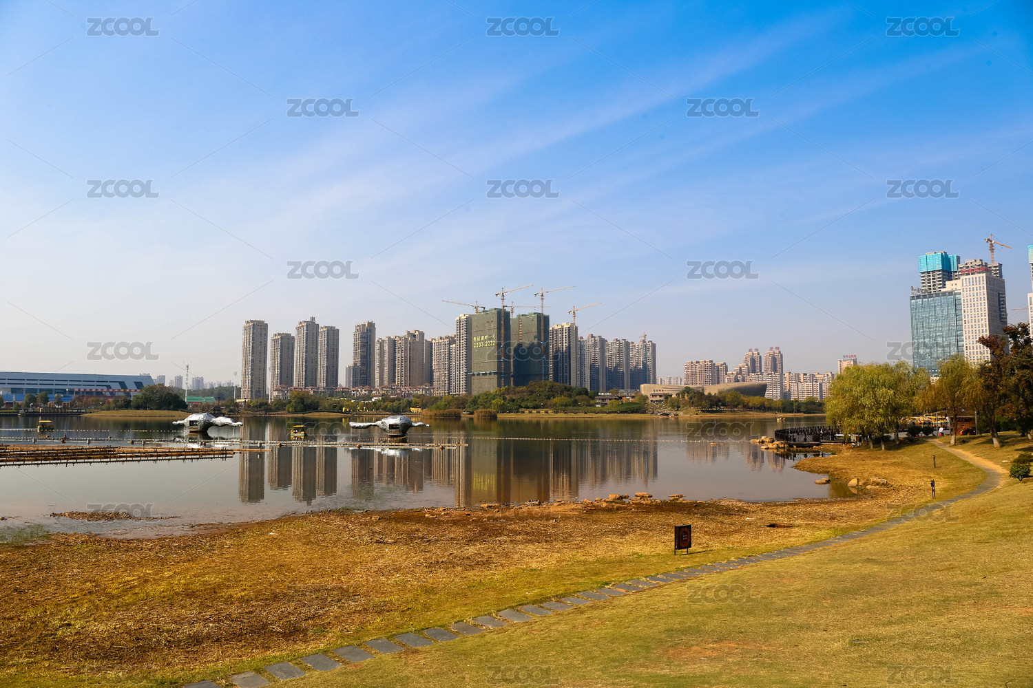 秋天的武汉琴台大剧院汉江月湖桥城市天际线