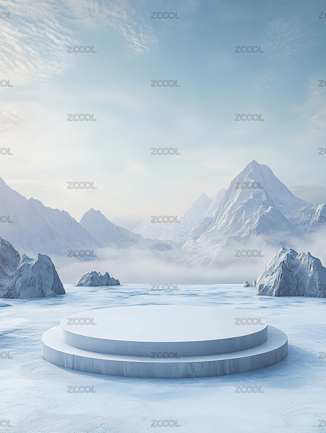 雪山浅蓝色3D电商产品展台