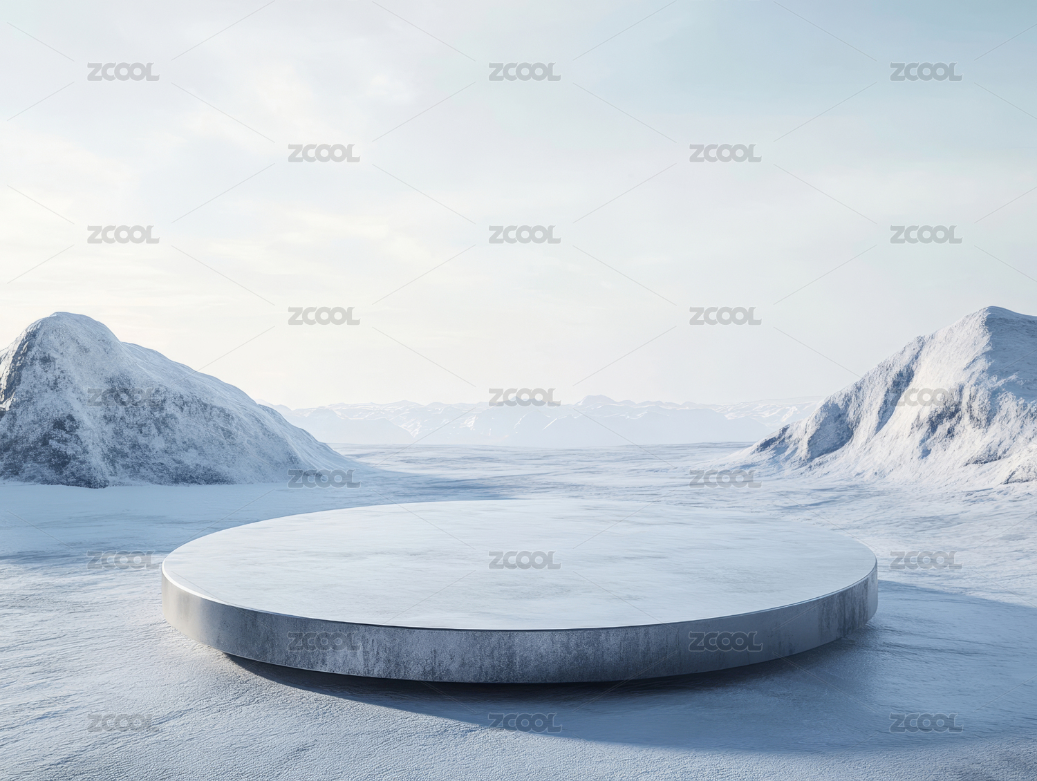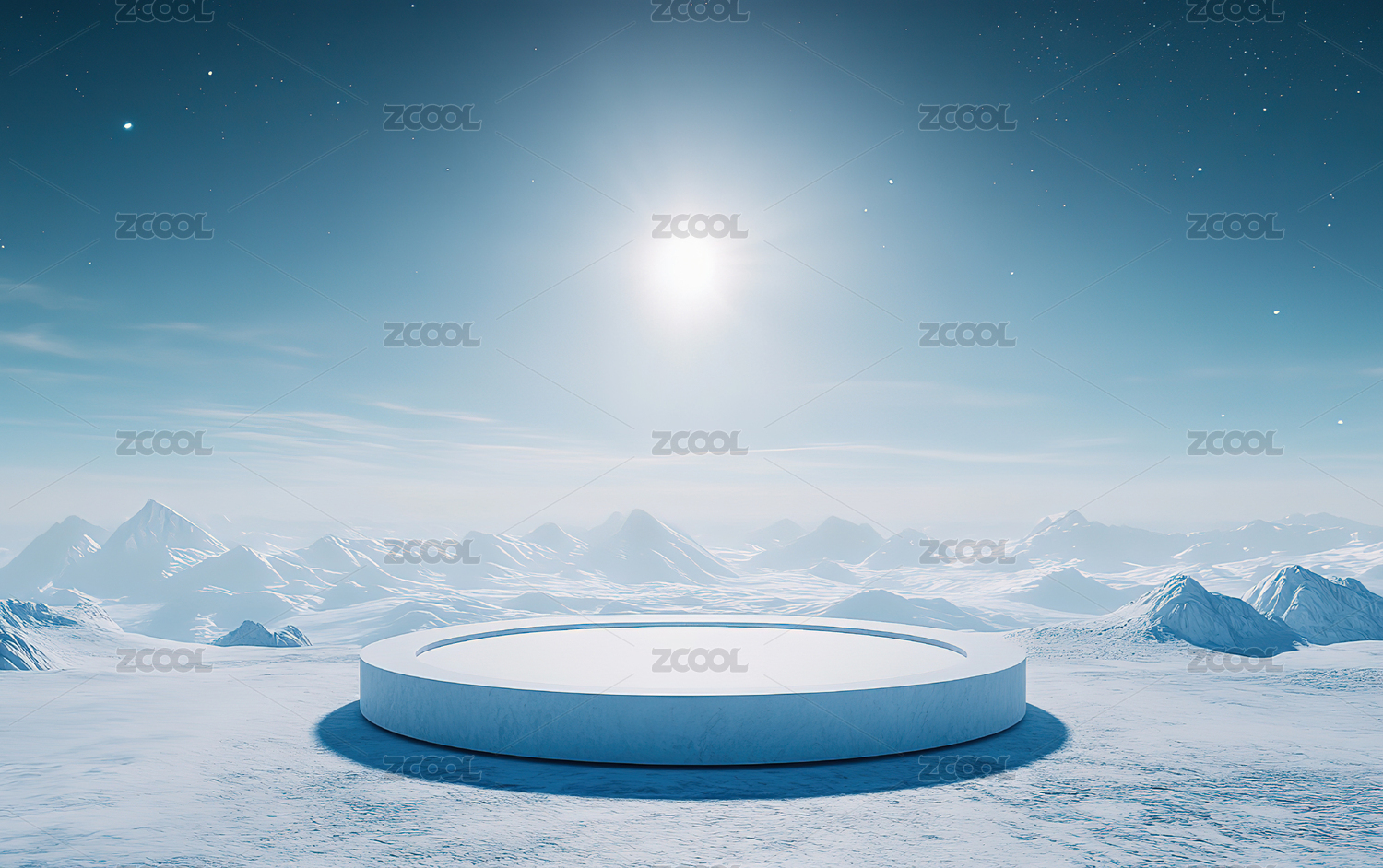雪山与圆形展台