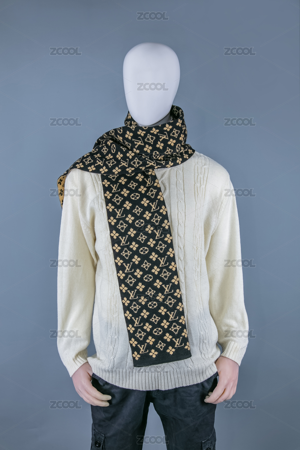 民国风男式冬季白色长袖保暖毛衣服装
