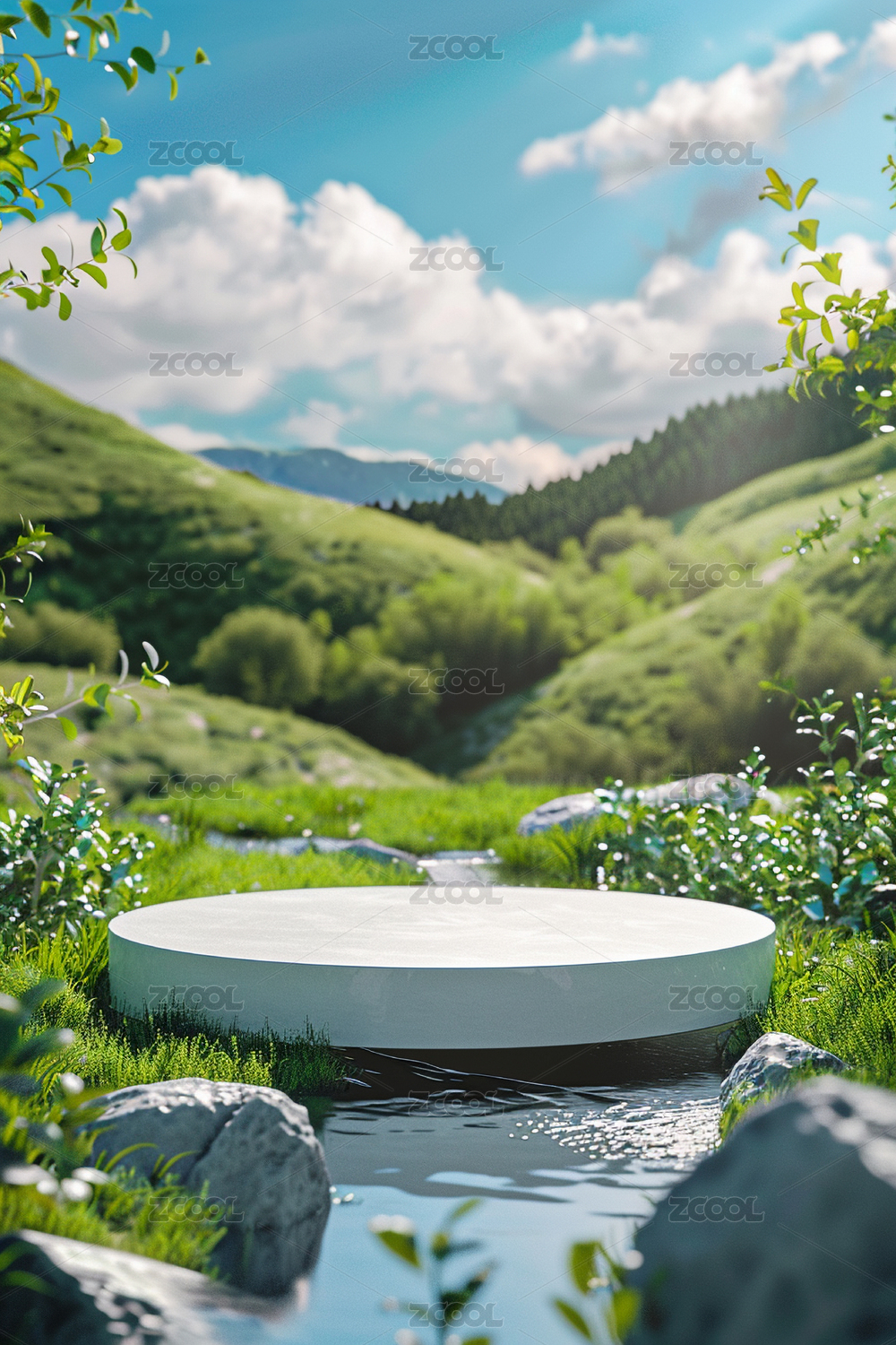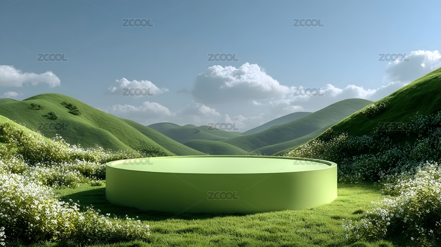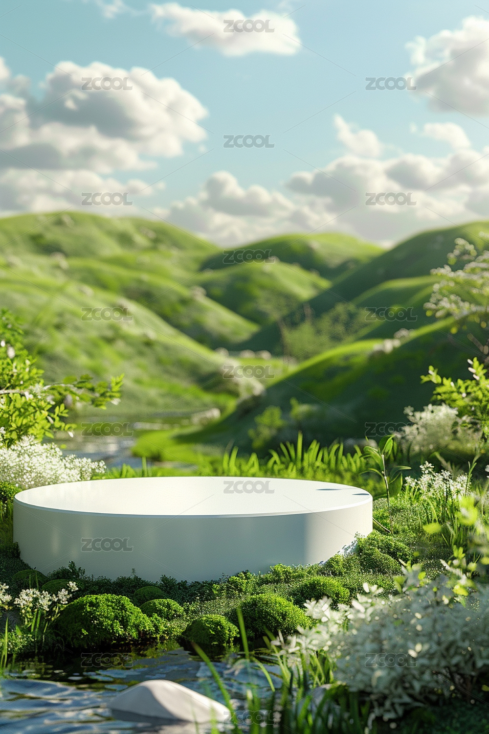 自然,场景,背景,展台,电商,电商展台,天空,白云,草坪,DXCZ202401