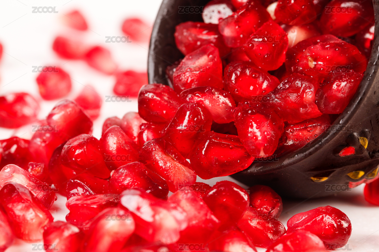 铁盘中的石榴籽细节