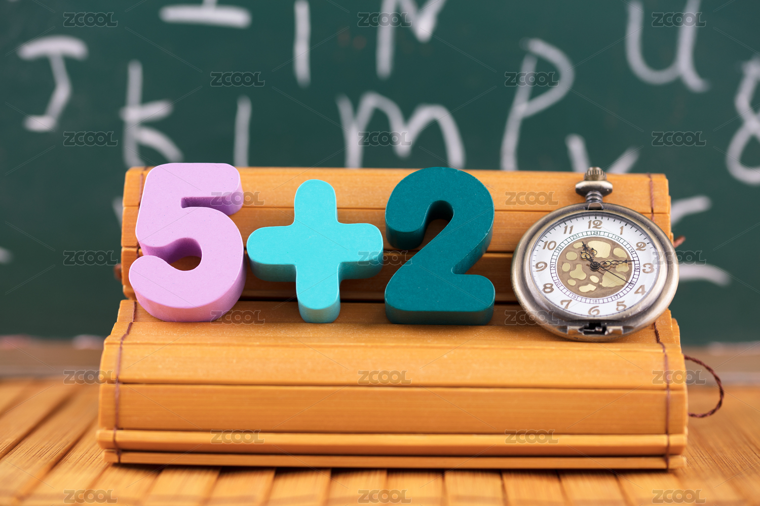 黑板前竹简上的数字5+2