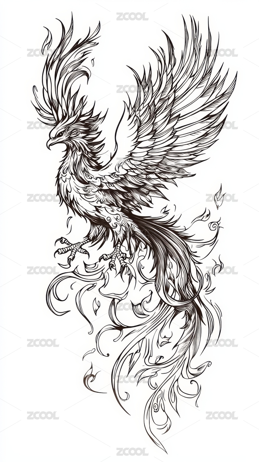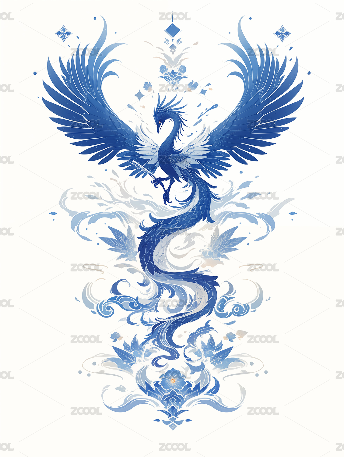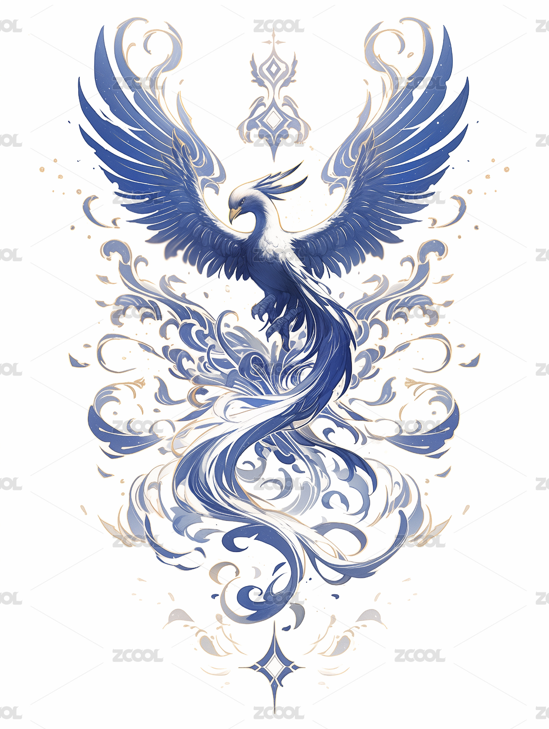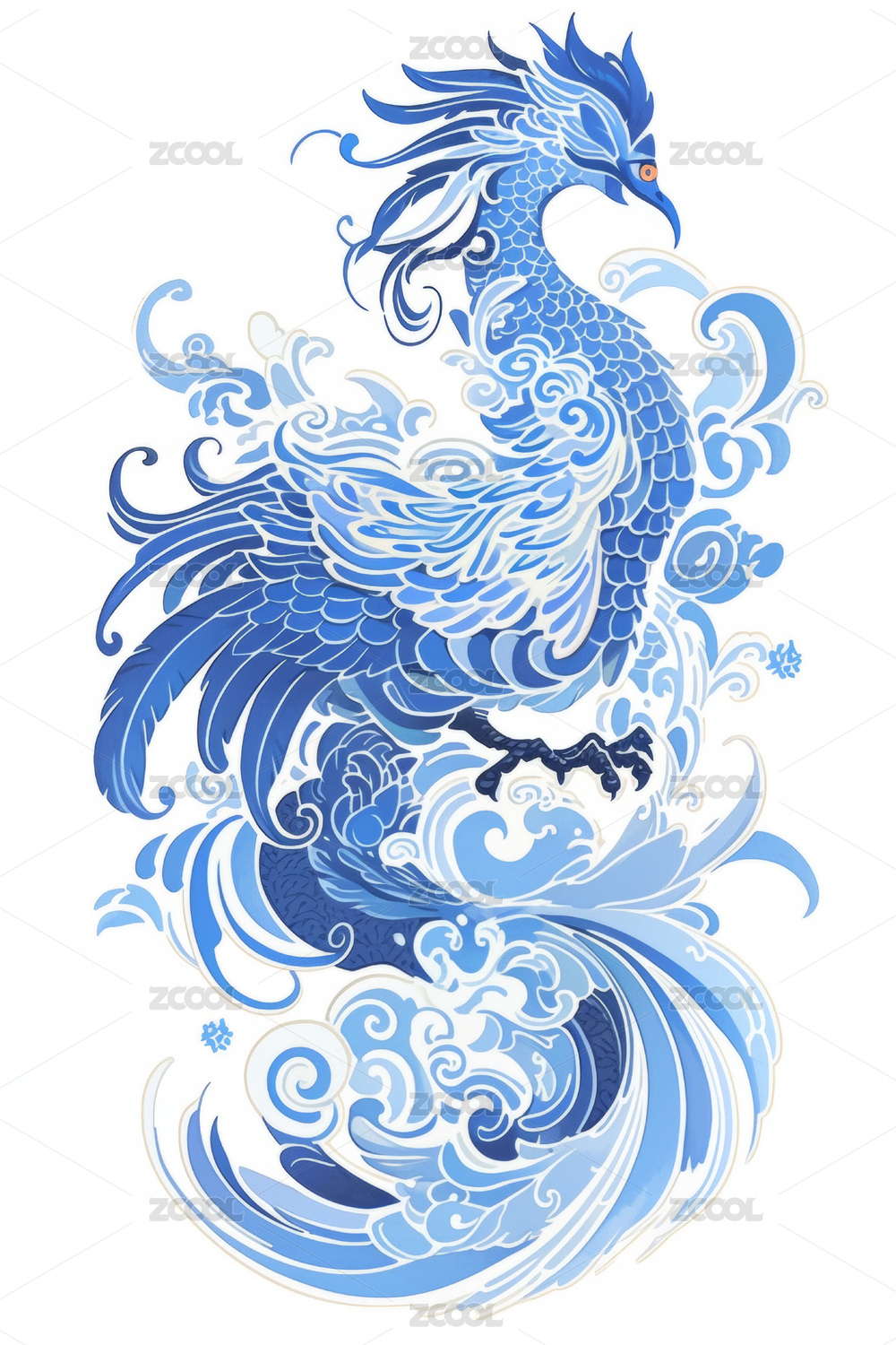 国潮动物凤凰展翅中式传统吉祥纹样色彩明亮
