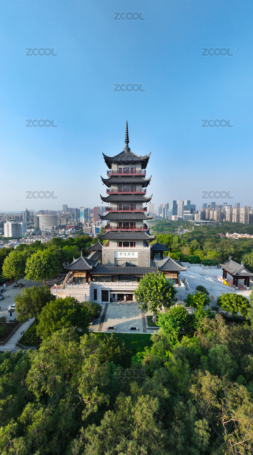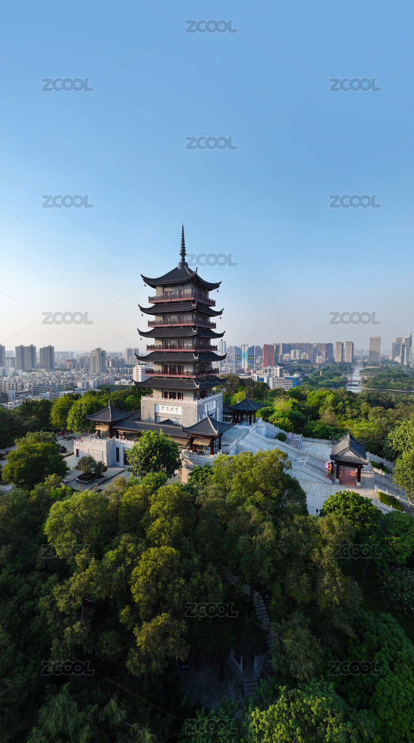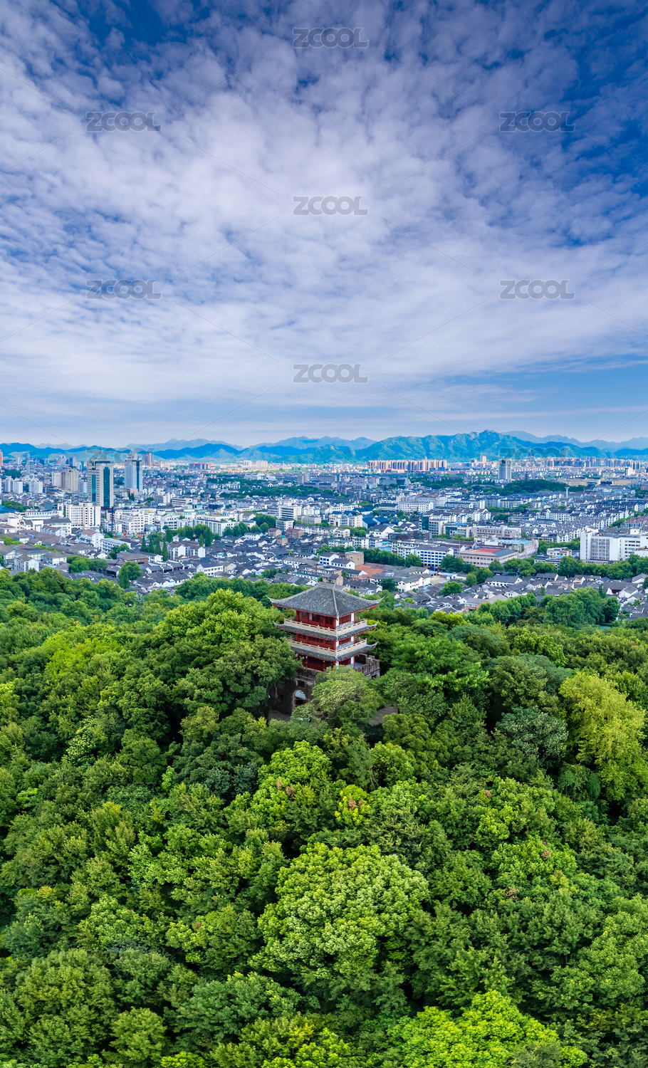 杭州,临平,临平公园,东来阁,建筑,临平山,建筑外观,航拍视角,航拍,高视角
