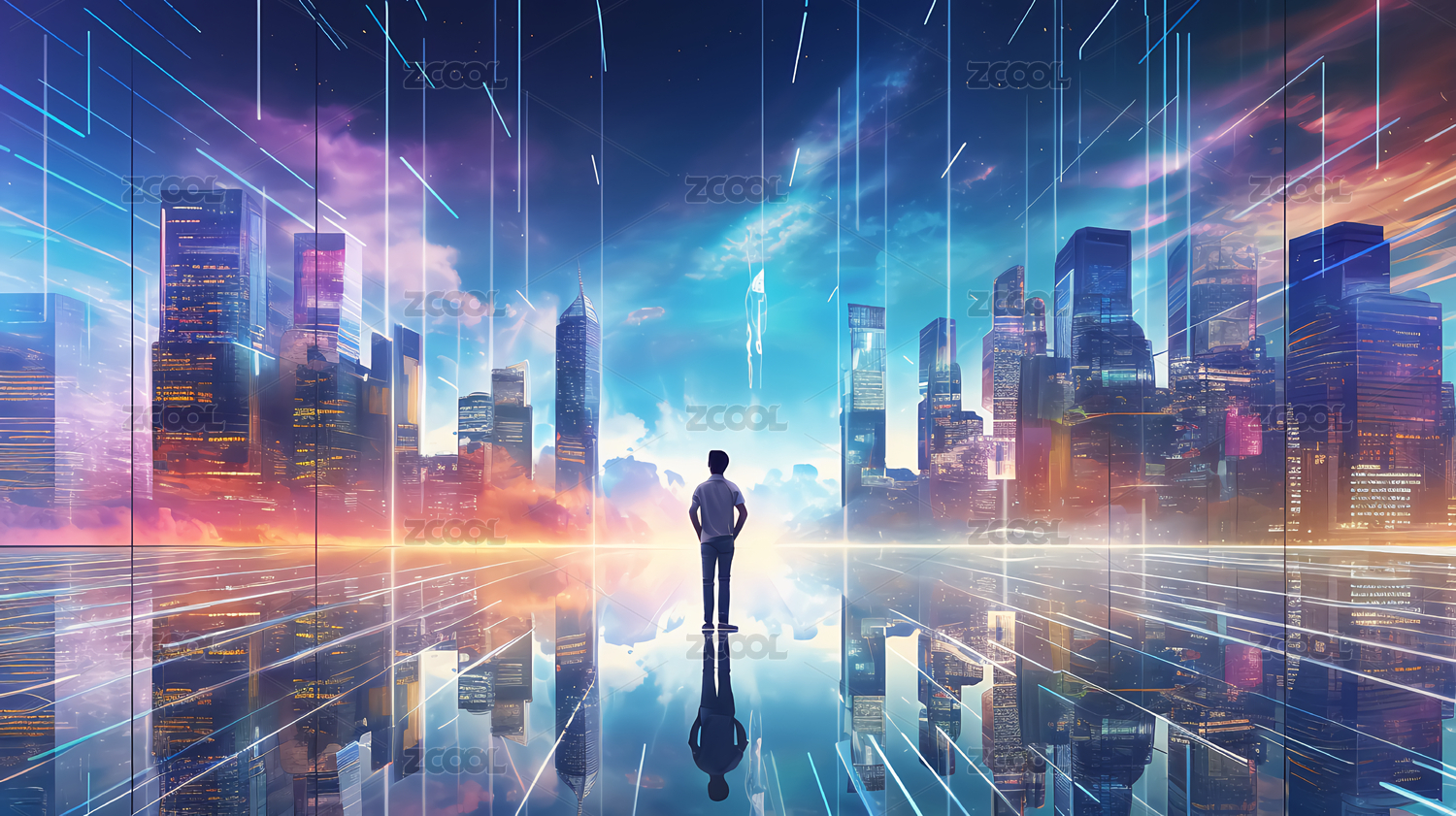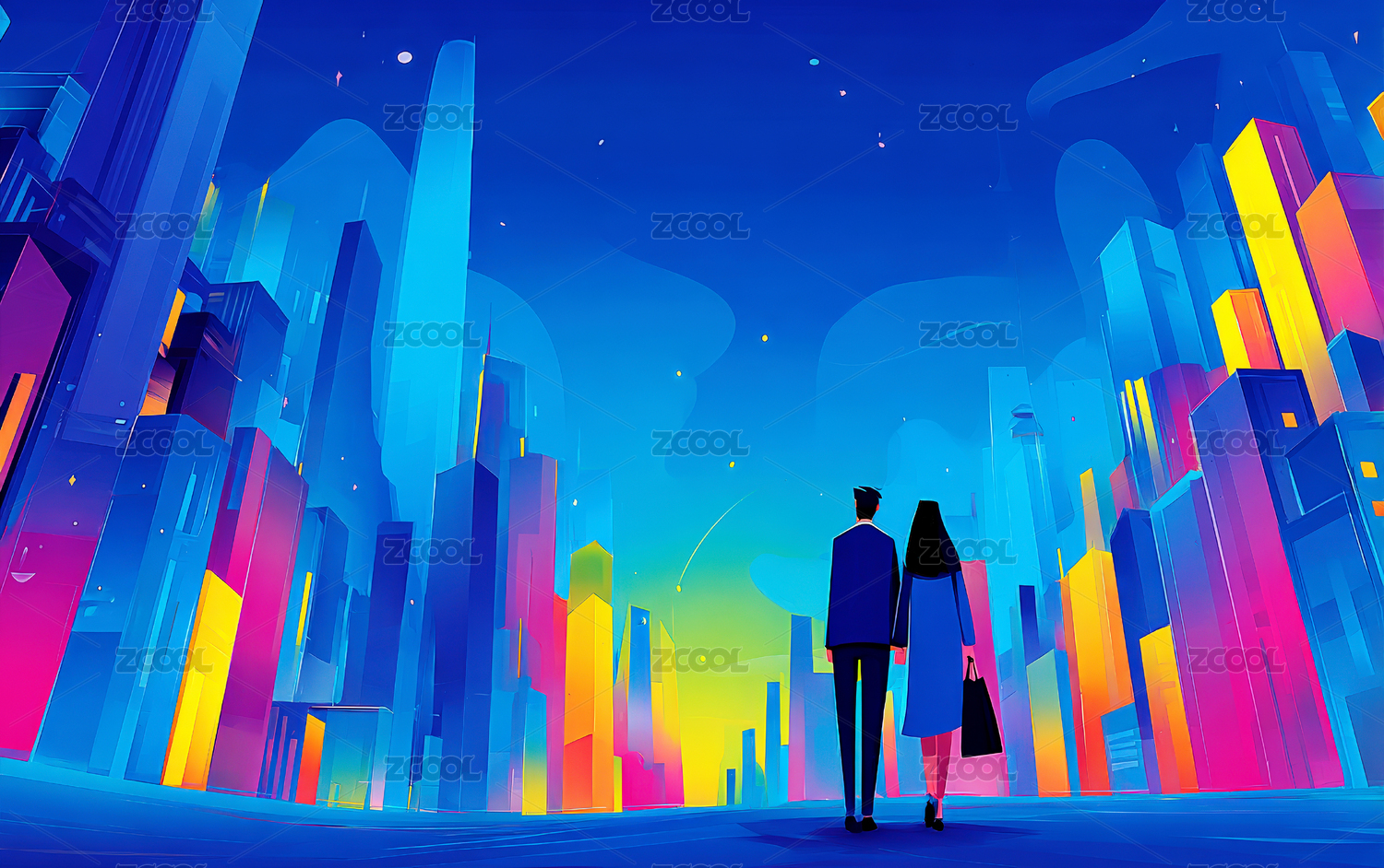 情侣,爱,矢量,绘本,氛围,发光,牵手,城市,极简,时尚