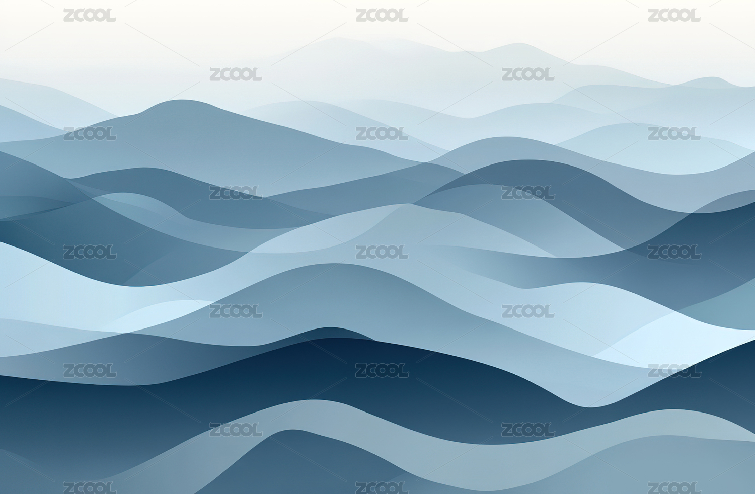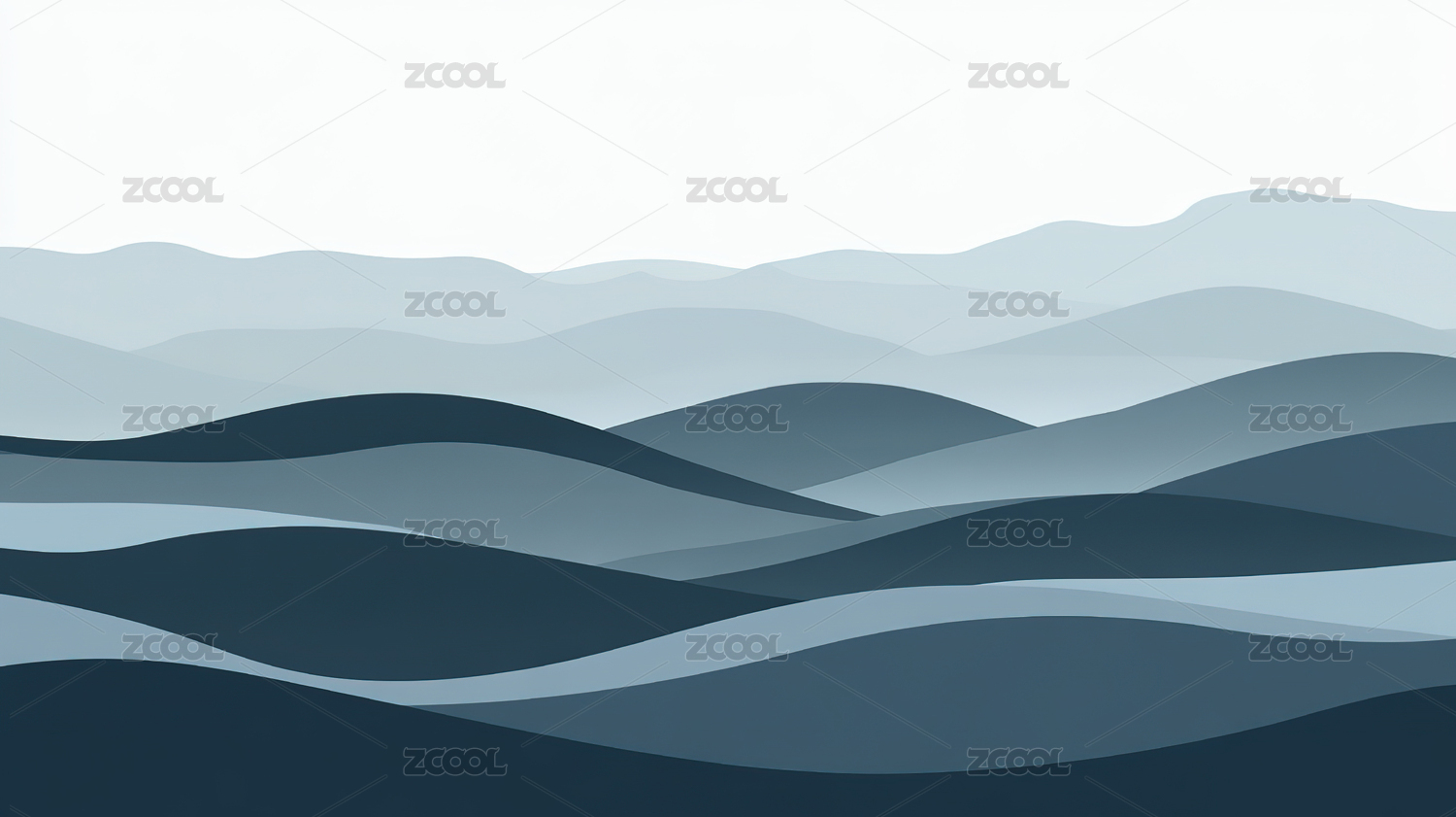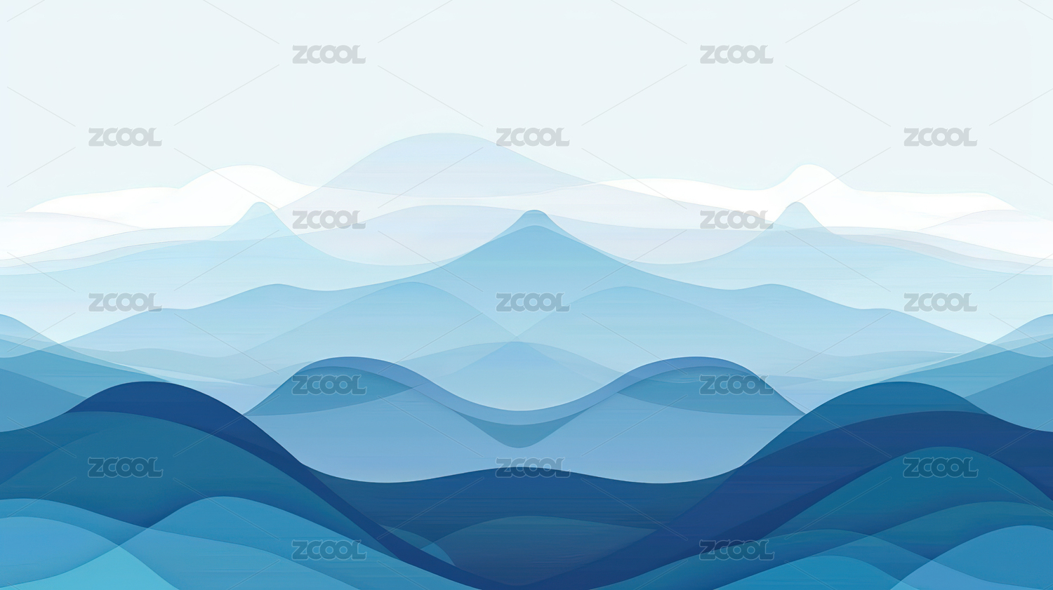 蓝色流动弯曲曲线抽象高山插画背景