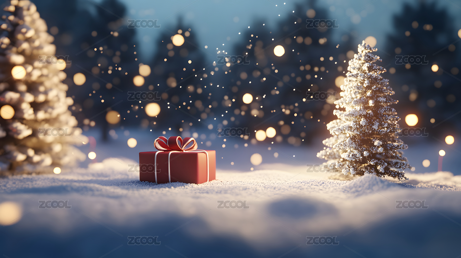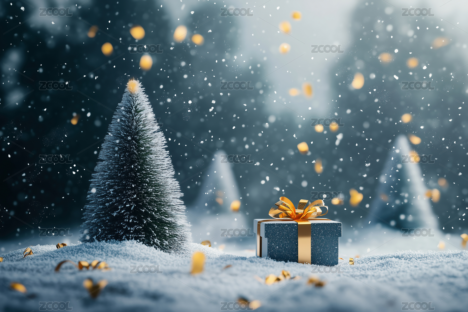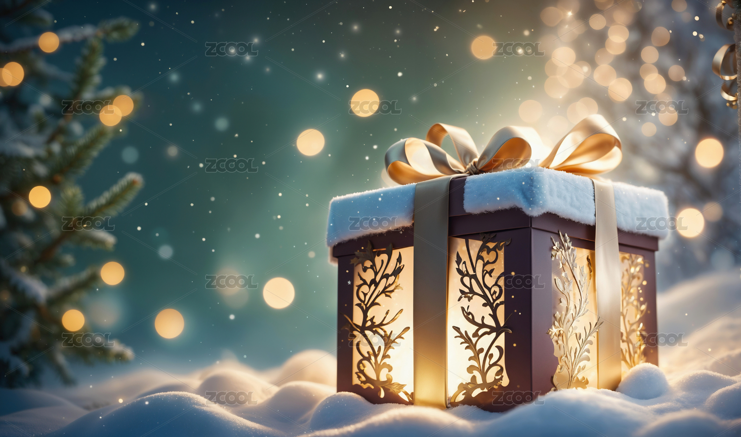冬天雪地里的圣诞节新年礼盒礼物