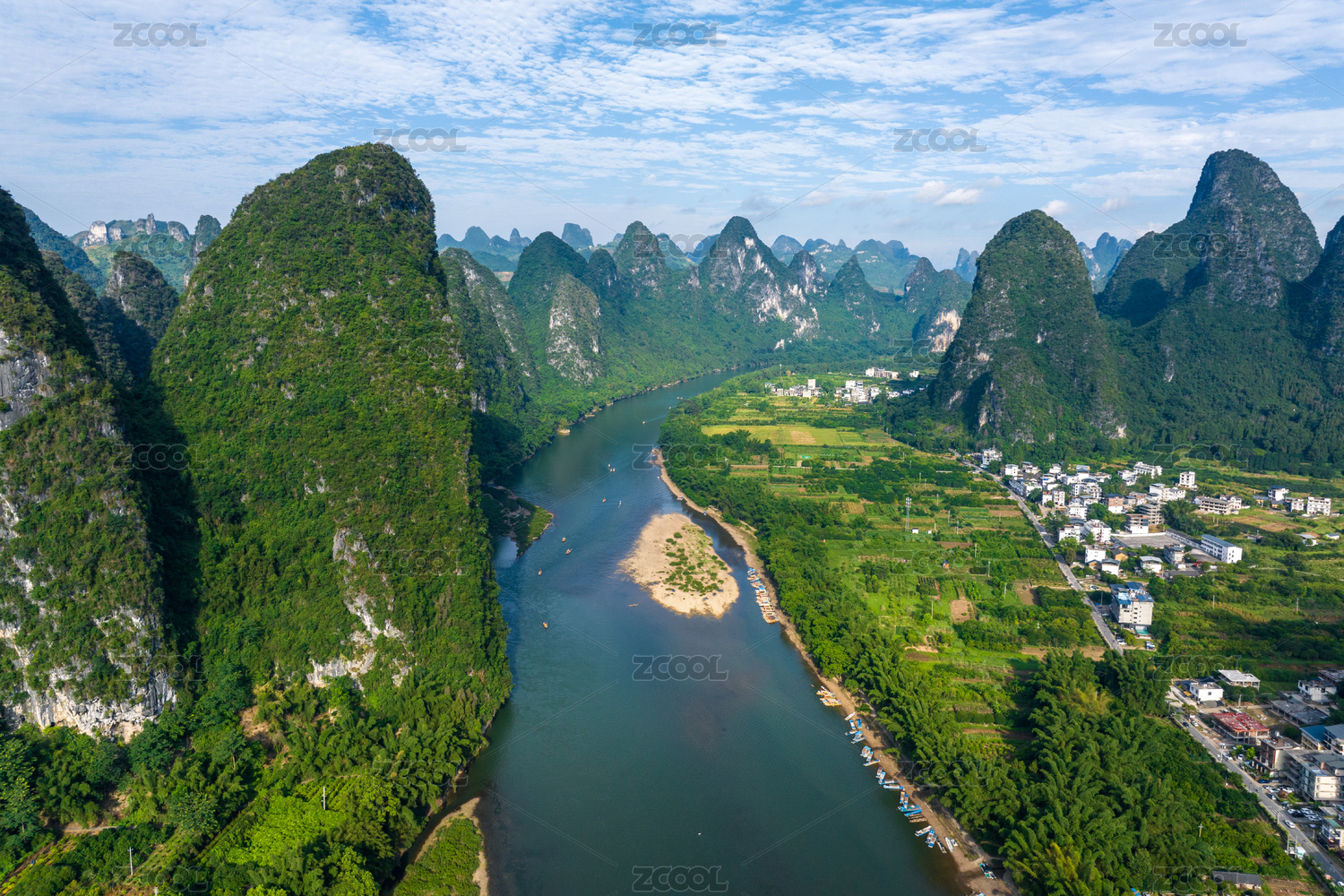 广西桂林阳朔县兴坪古镇漓江自然风光航拍