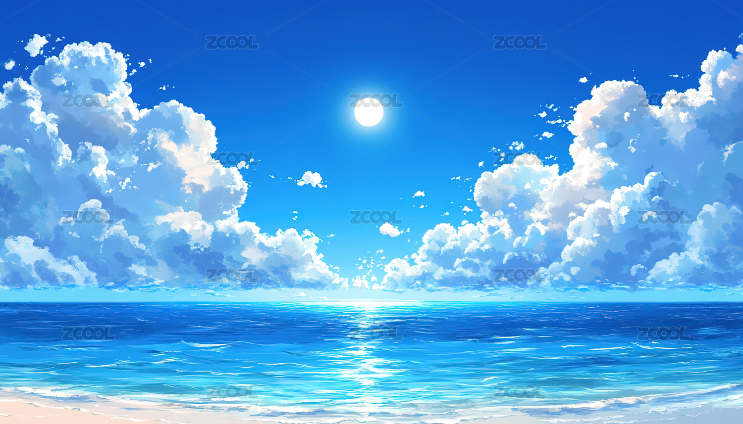 蔚蓝海滩与蓬松白云