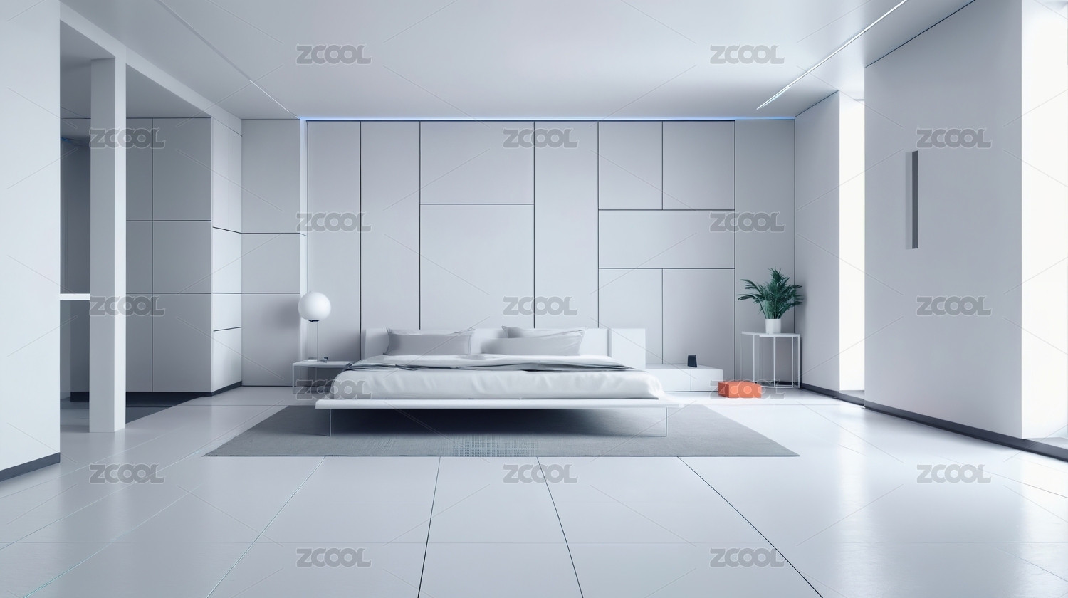 未来感的极简卧室场景