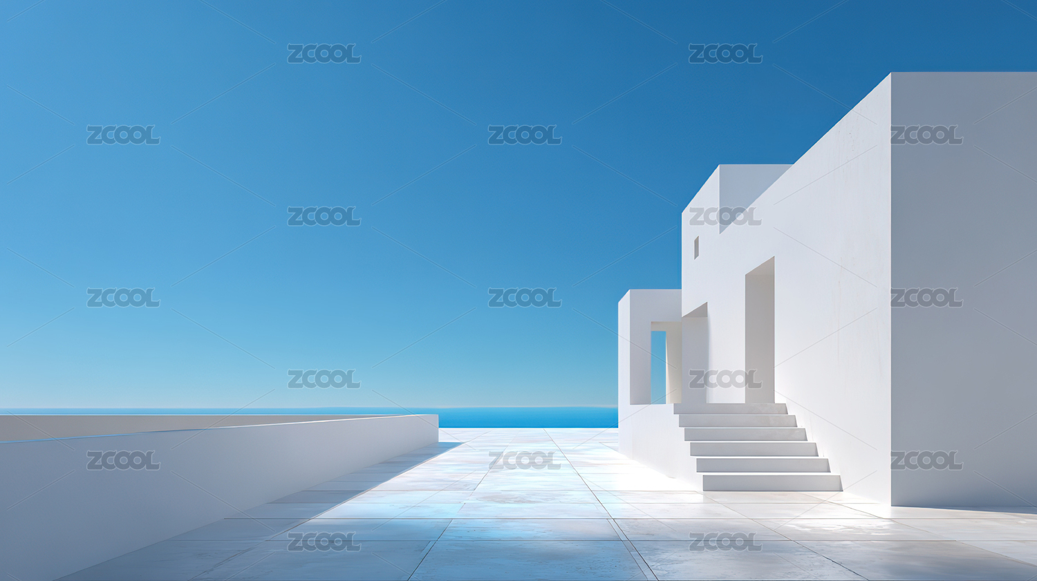海,建筑,白色,蓝色,天空,阳光,空旷,平台,楼梯,现代