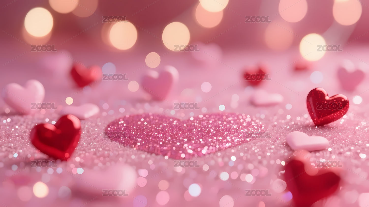 闪亮红色心形浪漫氛围