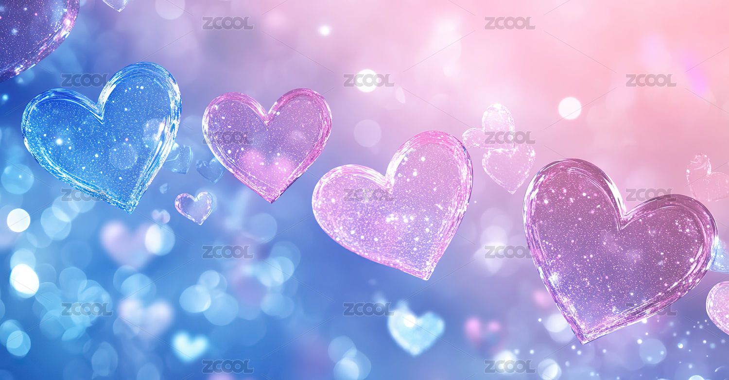 两颗爱心背景梦幻情人节主题