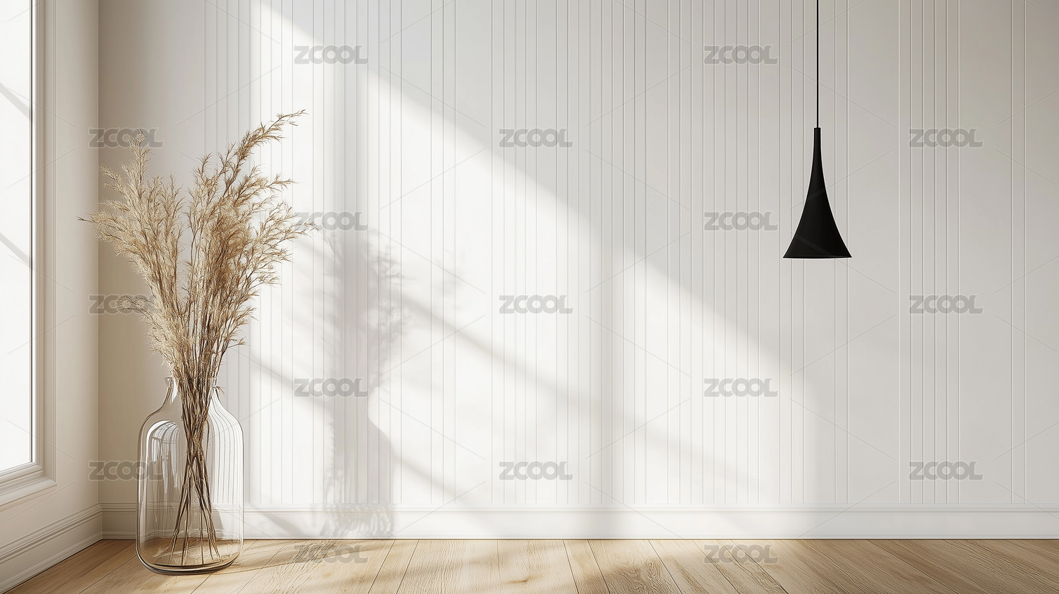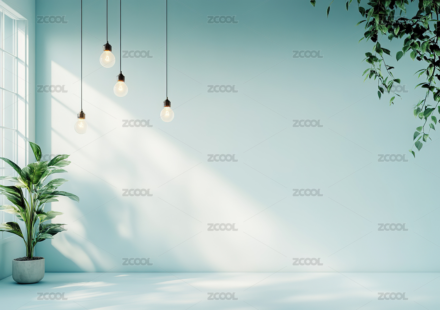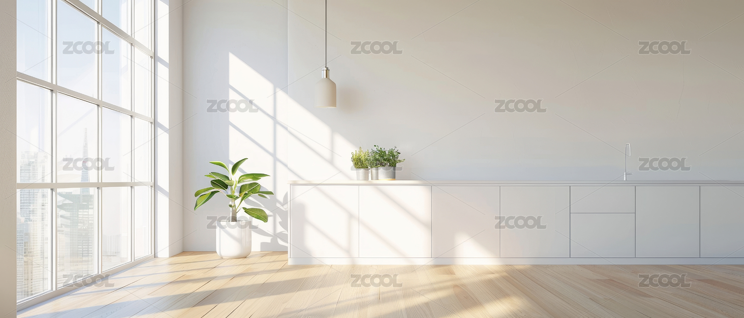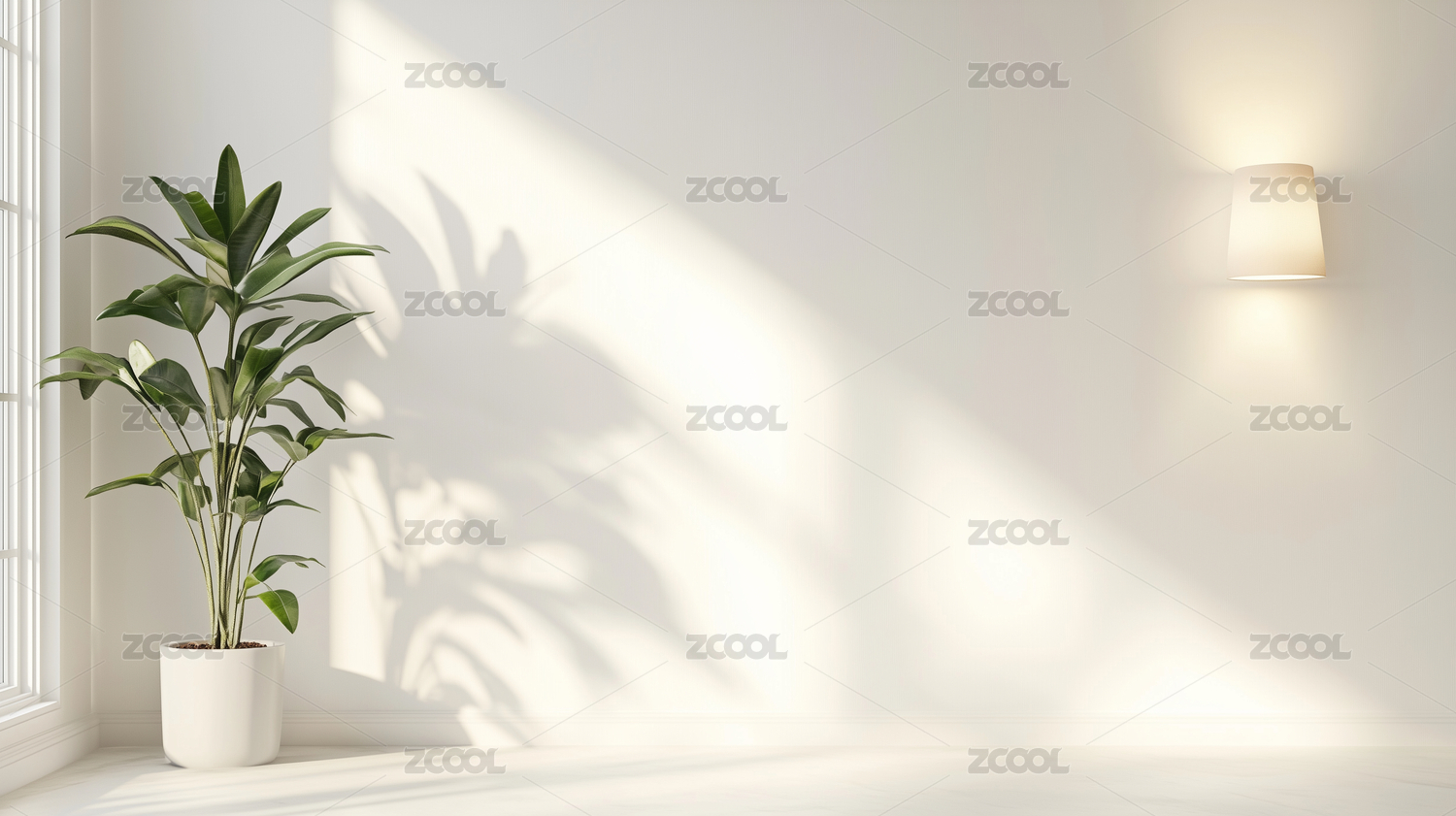 干净的室内白墙和绿植装饰简约空白渲染背景