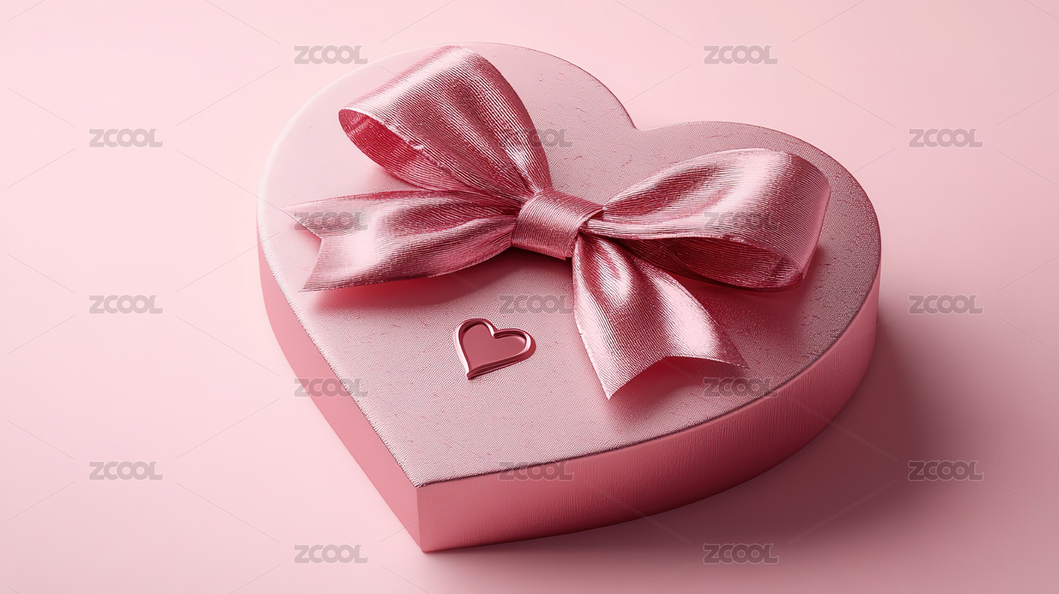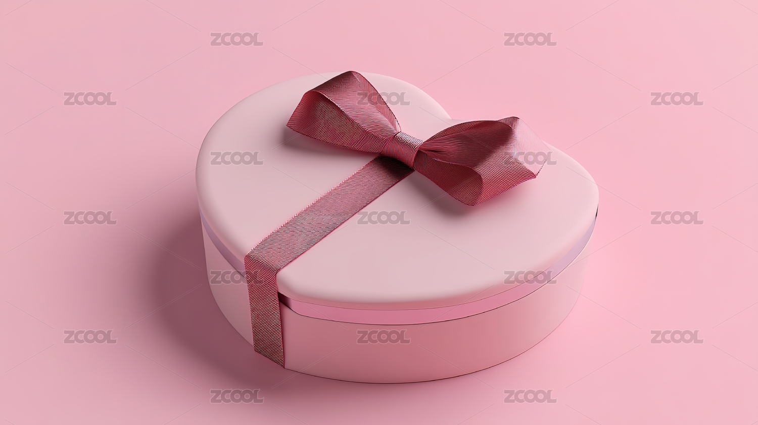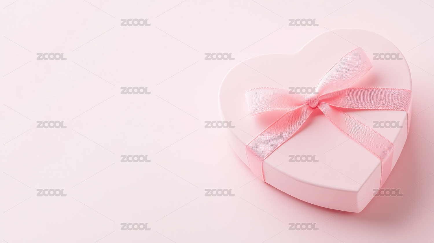 粉红色倾斜心形礼物盒子玫瑰色丝带礼盒