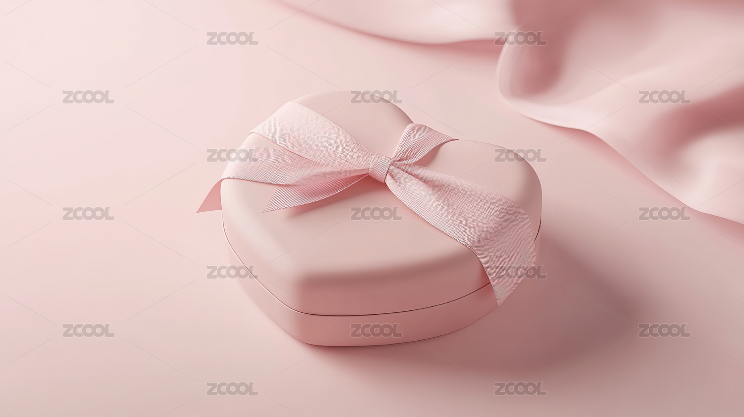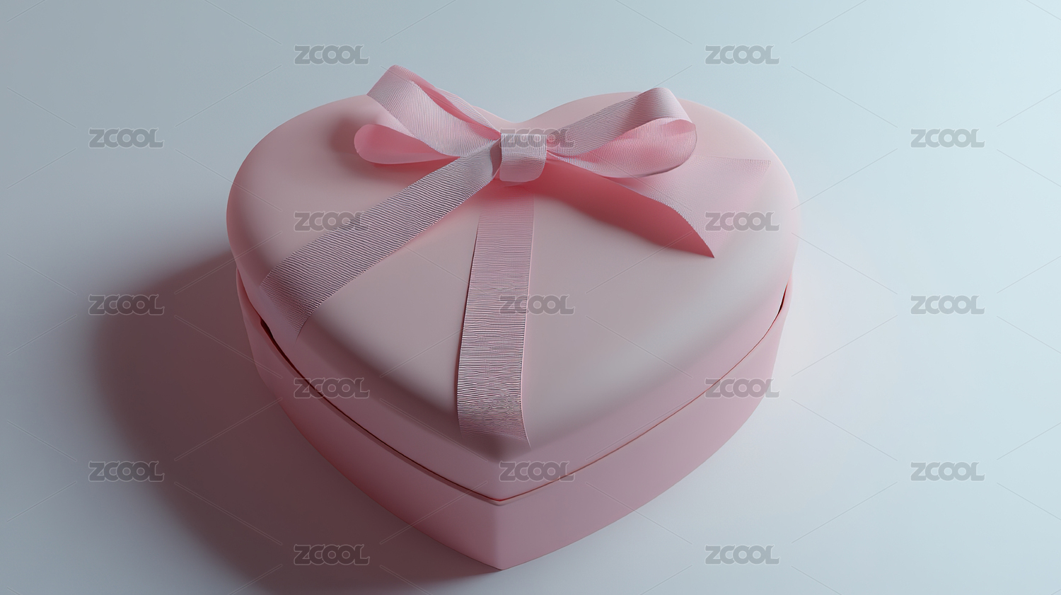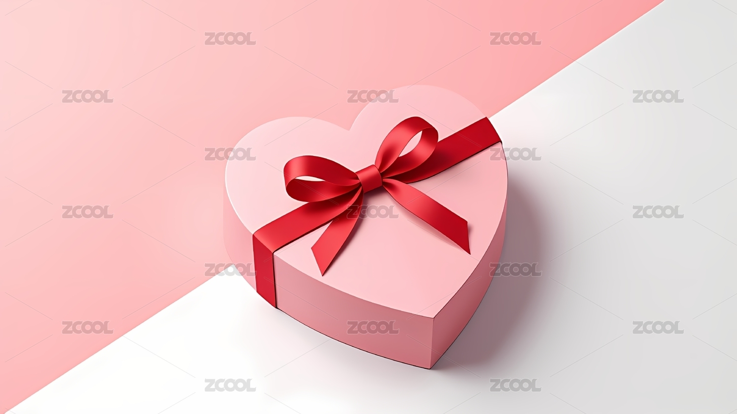 粉红色倾斜心形礼物盒子玫瑰色丝带礼盒