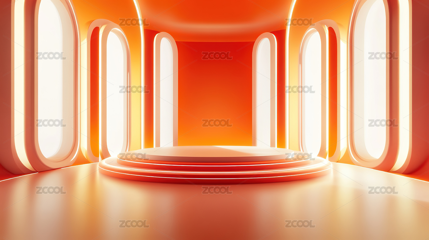 3D科技感橙色发光科幻电商展示台