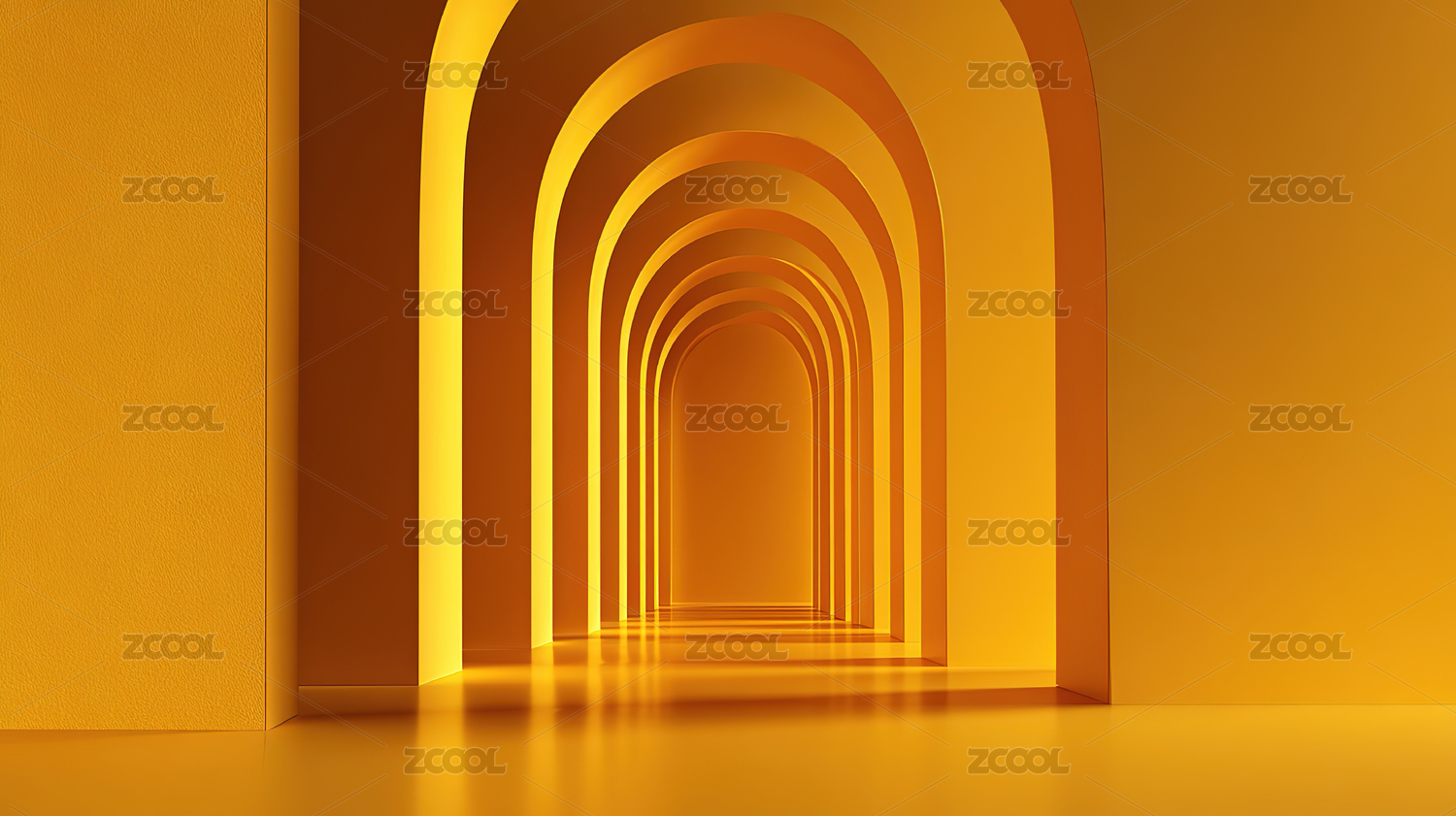 金色拱廊通道的抽象视觉艺术