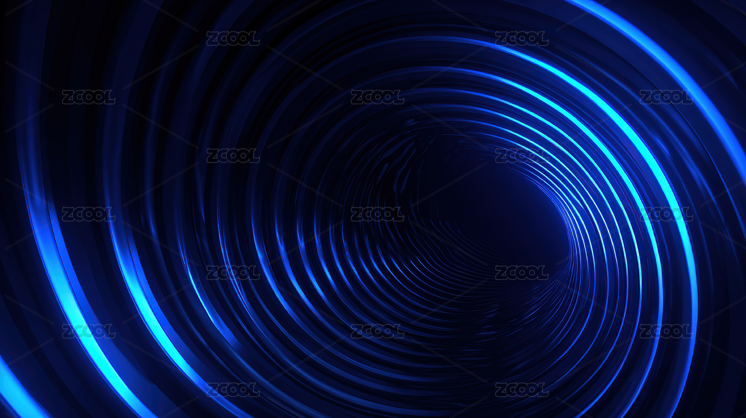 蓝色,光线,圆形,隧道,深邃,未来,科技,空间,黑暗,发光