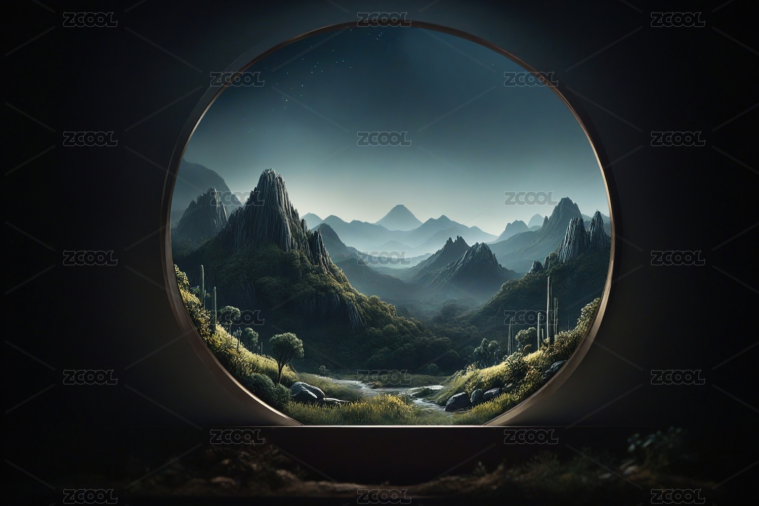 窗外的奇幻山景主题