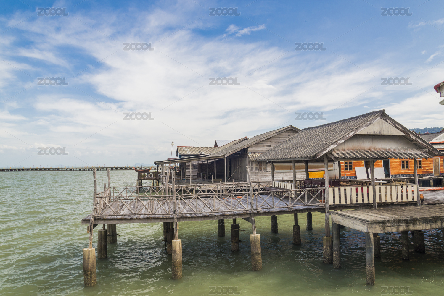 冬天的泰国甲米的兰塔岛古镇街边的民居建筑