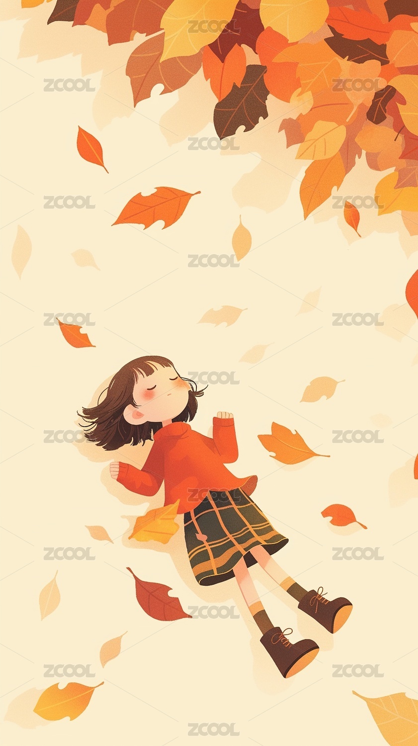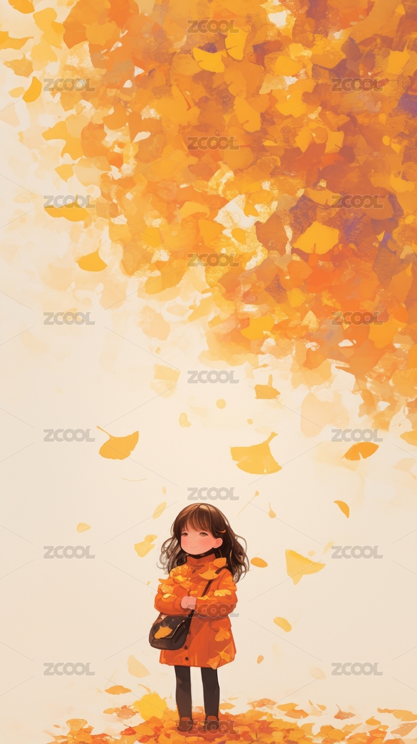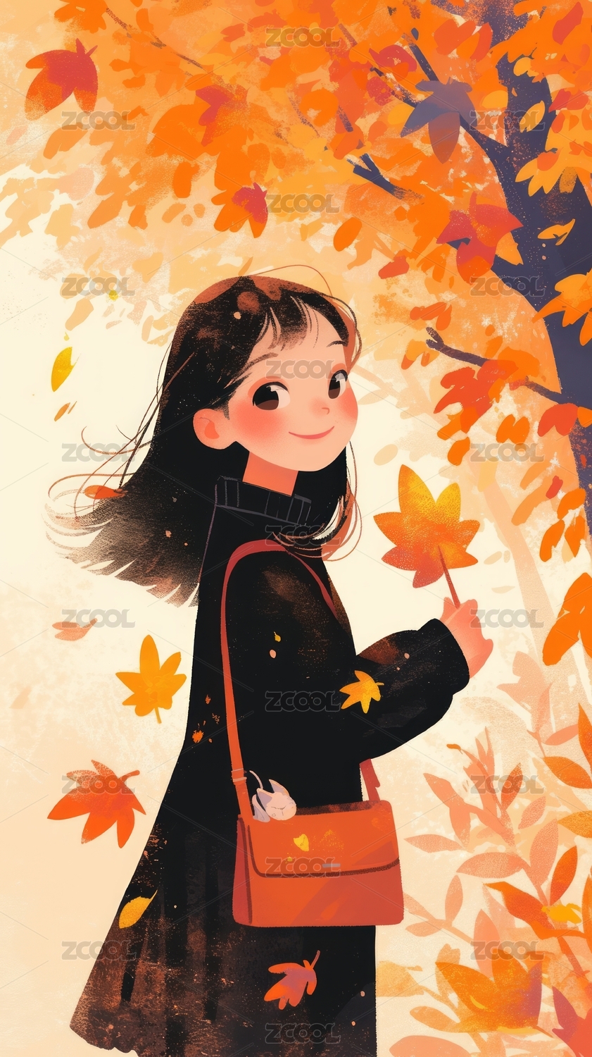少女,秋季,秋天,立秋,秋分,插画,风景,风光,旅行,旅游