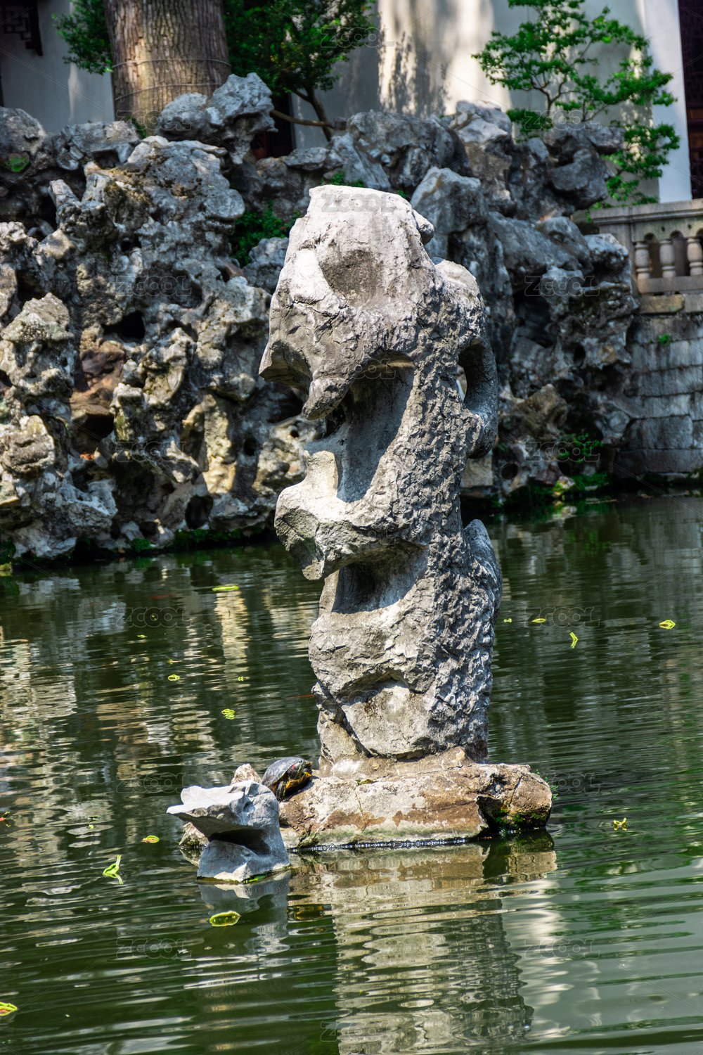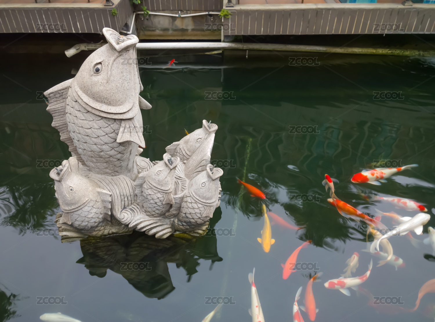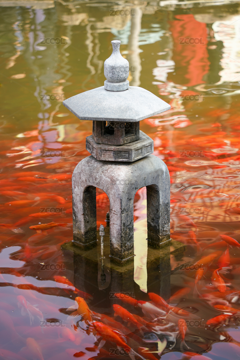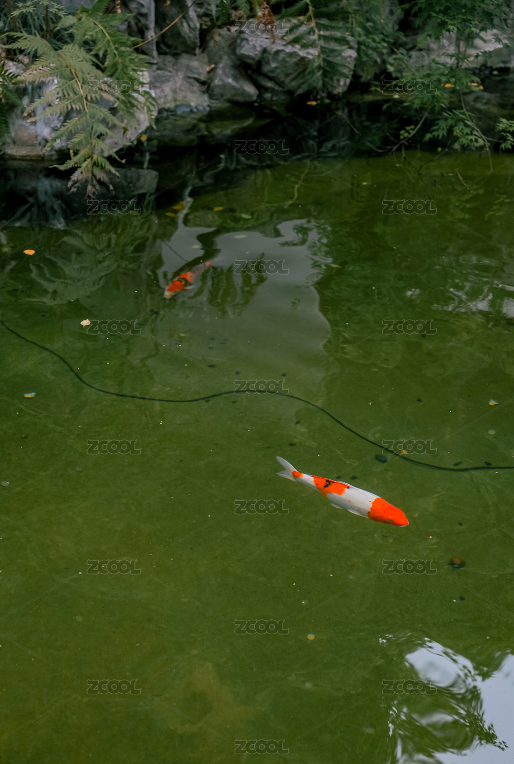 岱庙里的鱼池假山和锦鲤拍摄主题