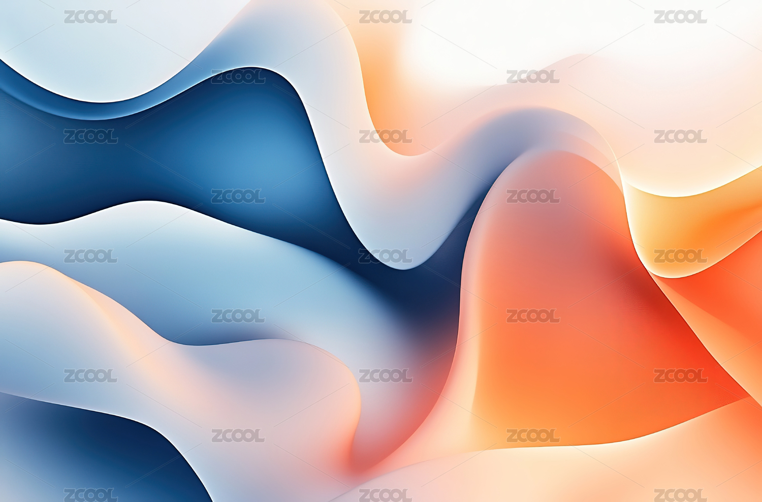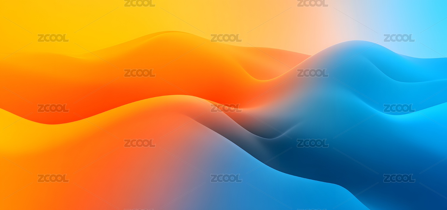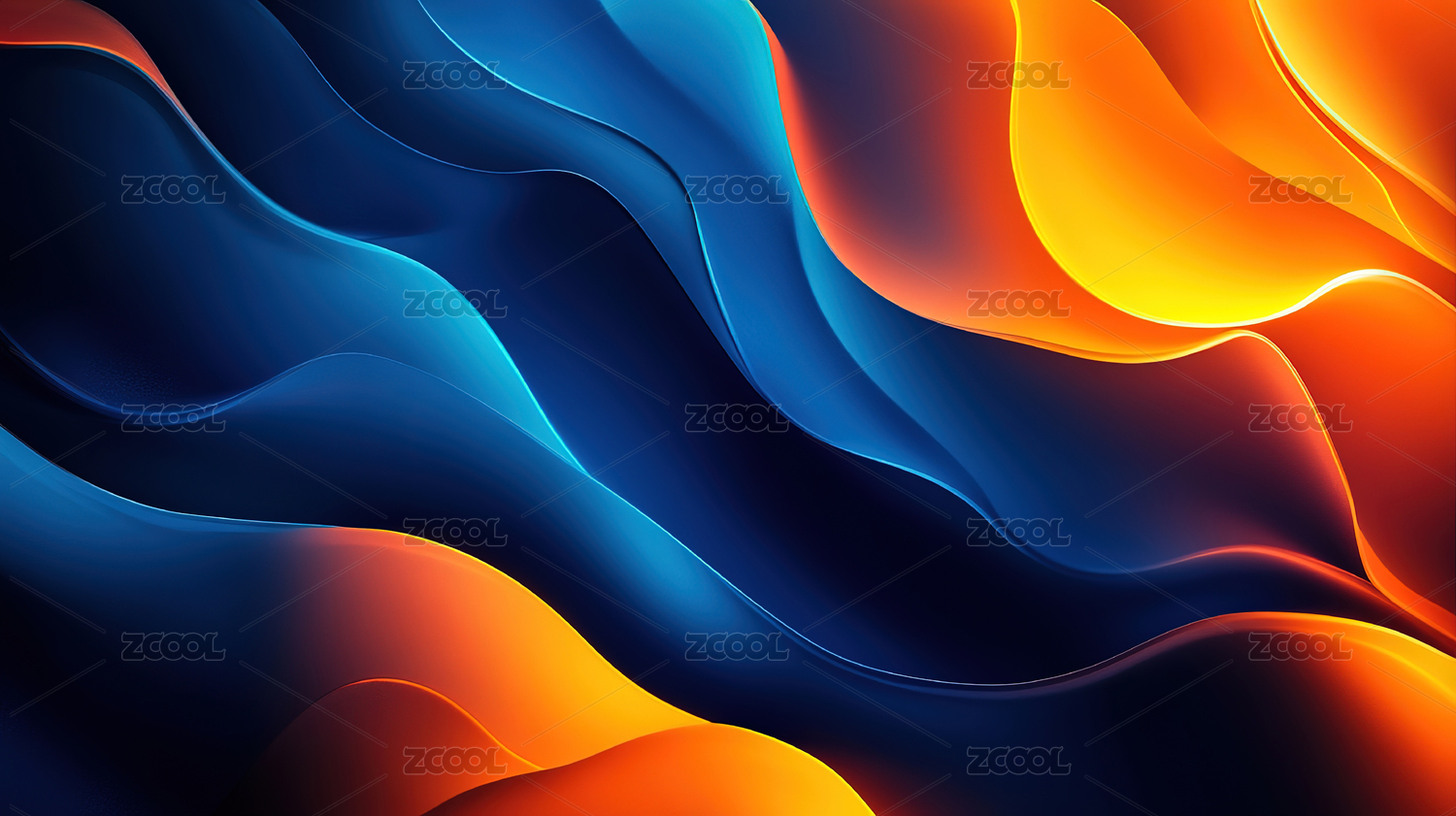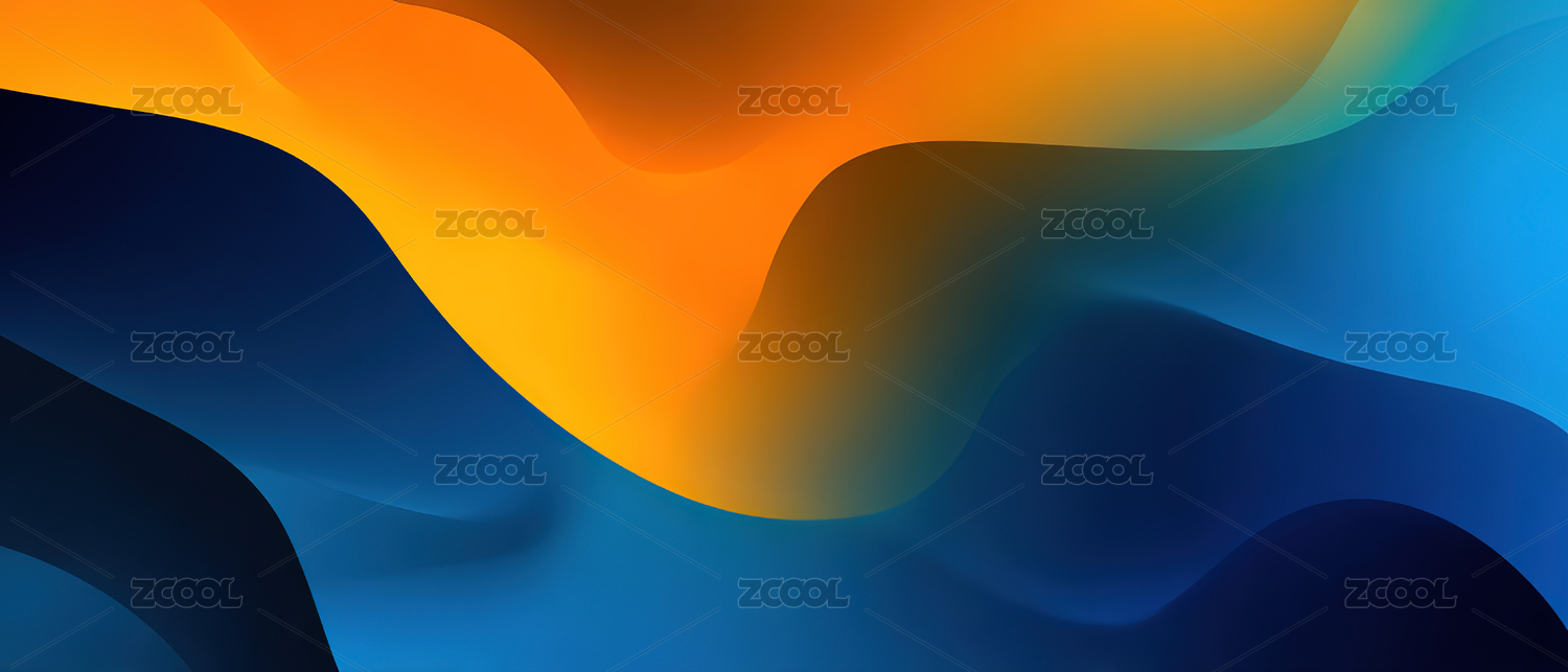 蓝色橙色渐变的波浪线条,抽象形状背景
