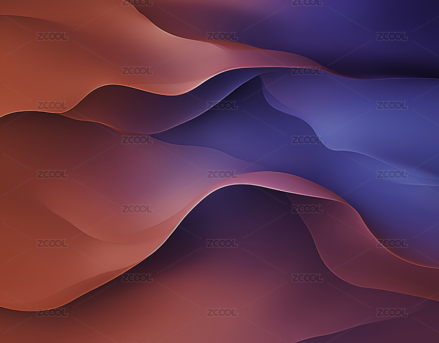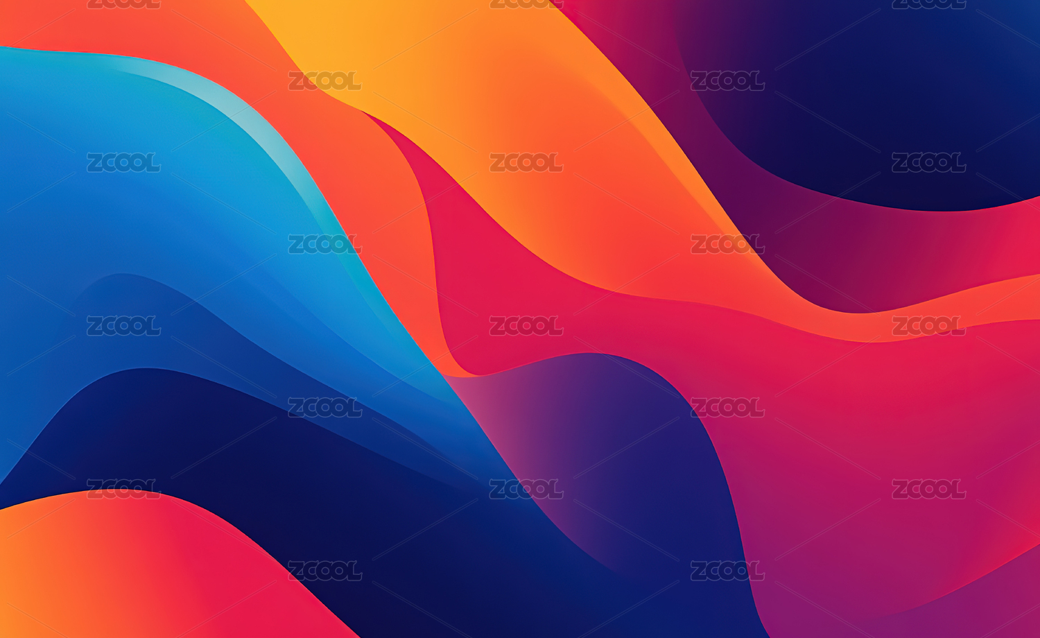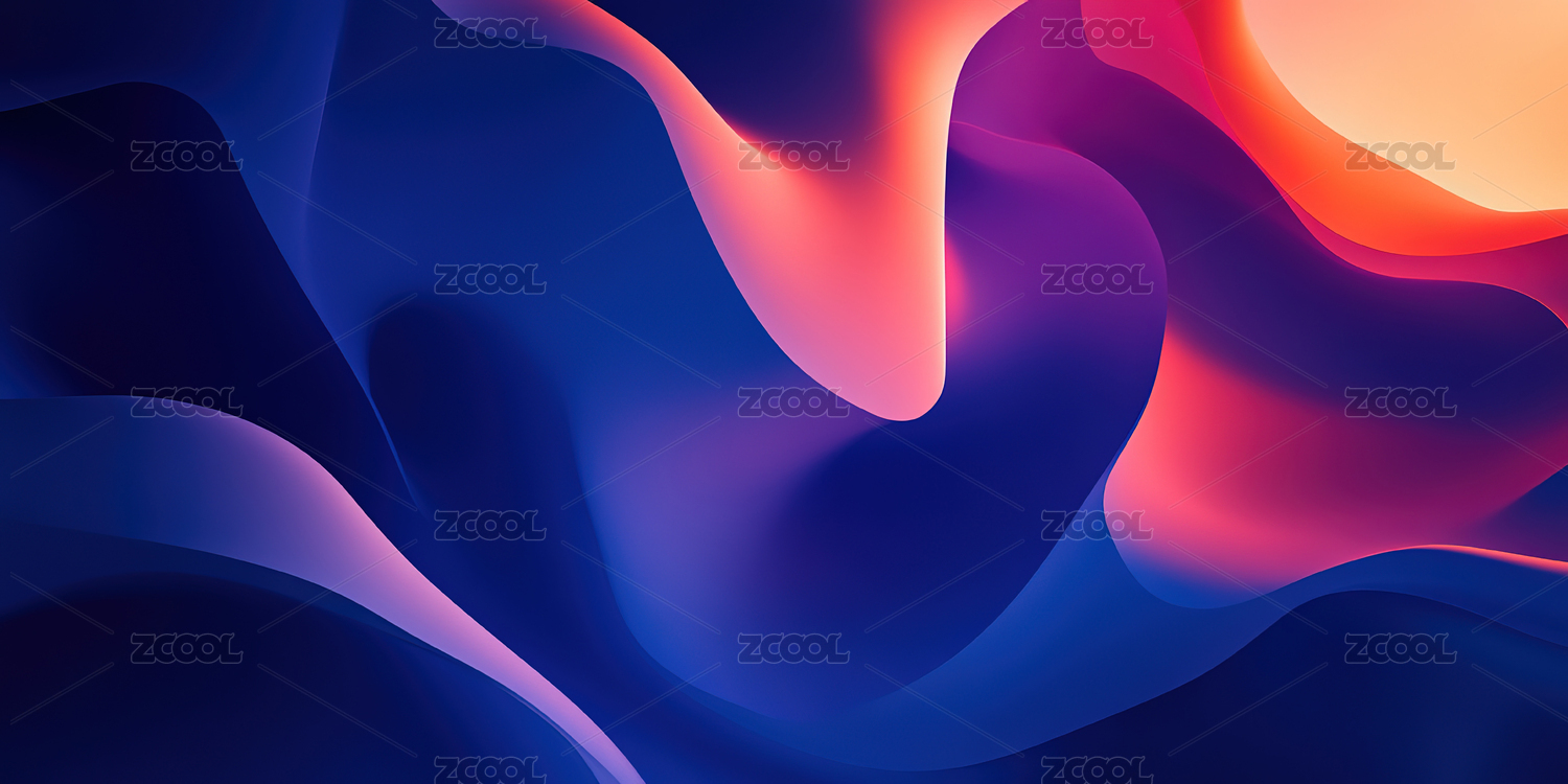 蓝色橙色渐变的波浪线条,抽象形状背景
