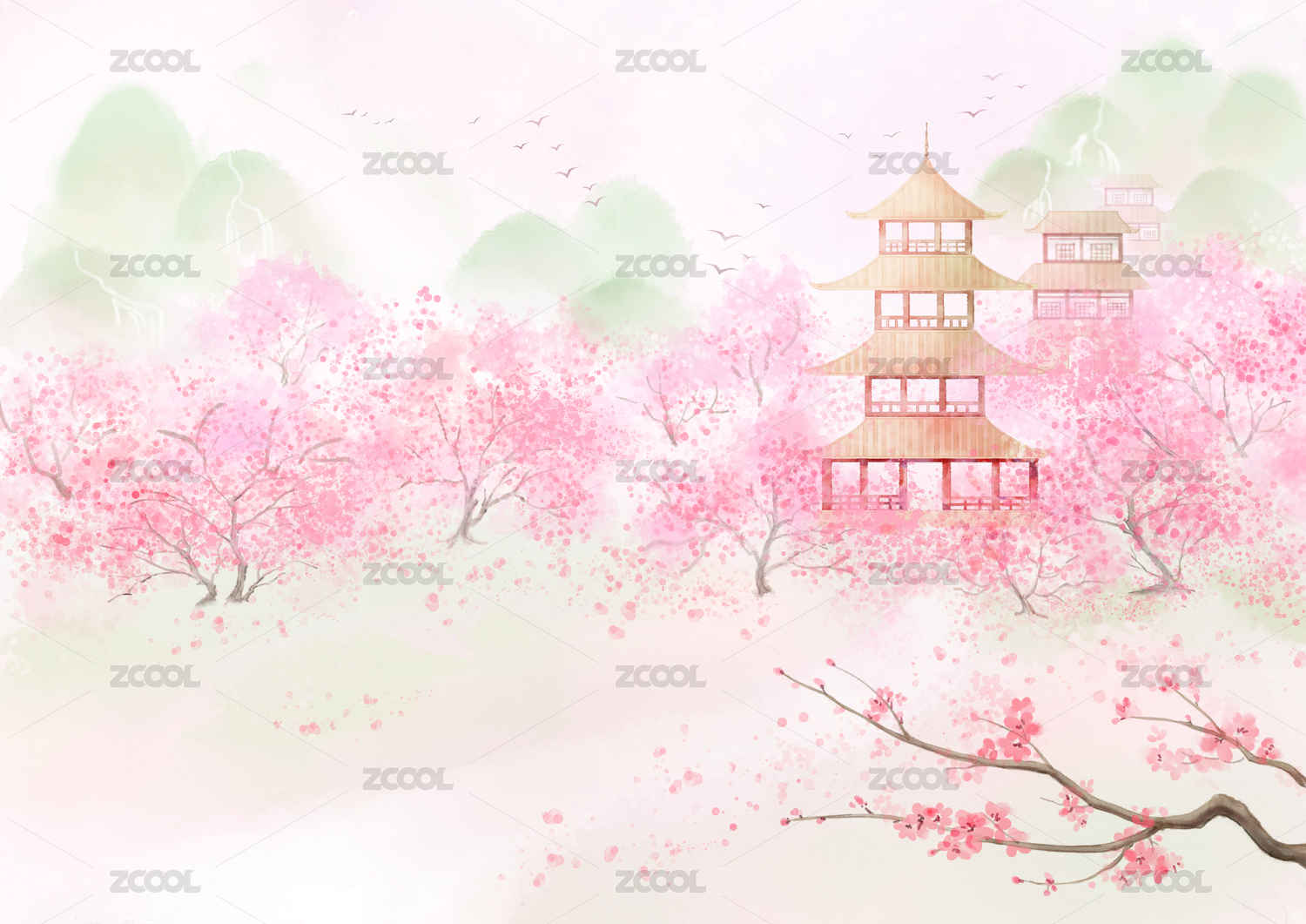 春天,季节,长发,少女,女孩,植物,花丛,燕子,自然,户外