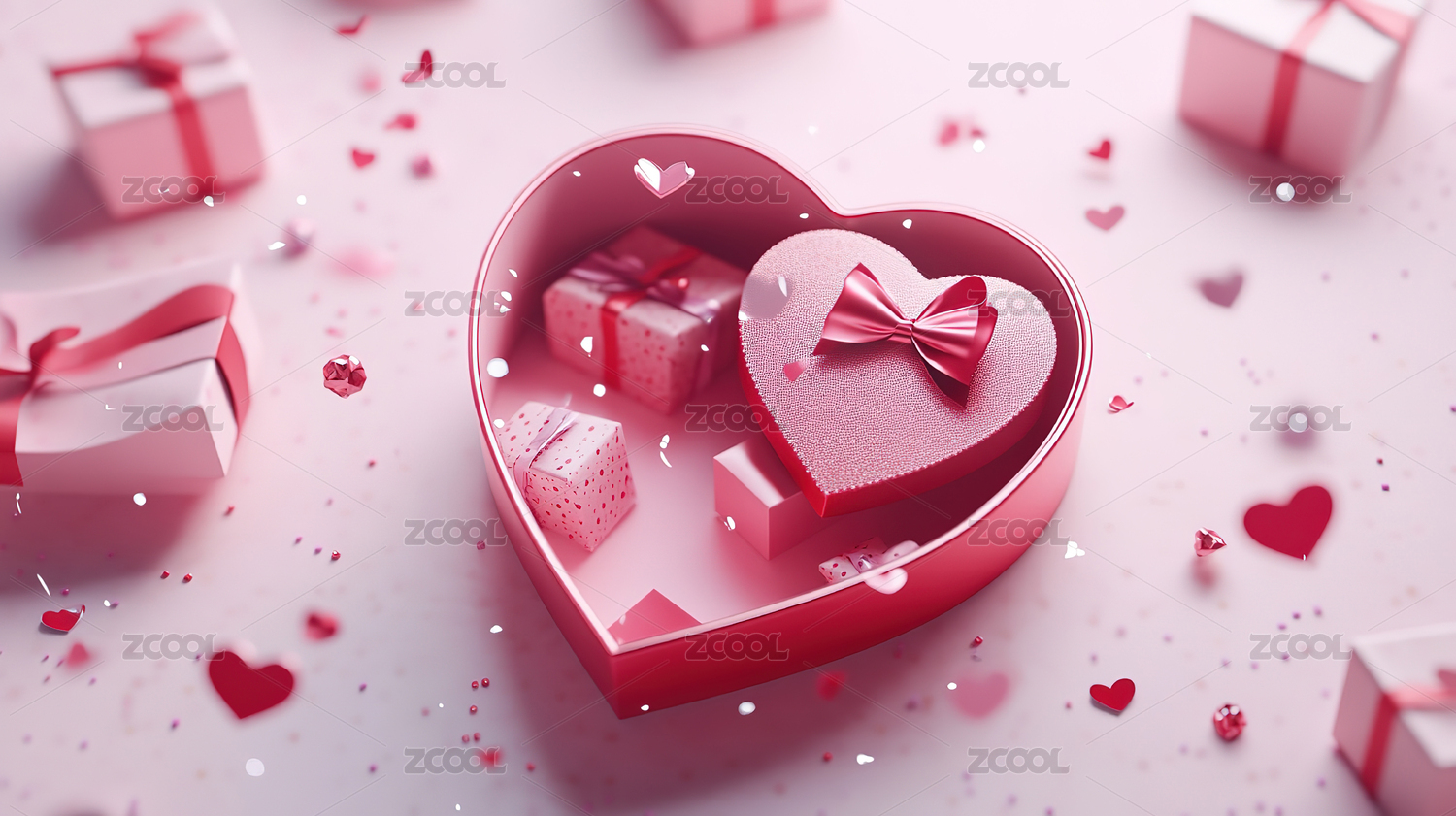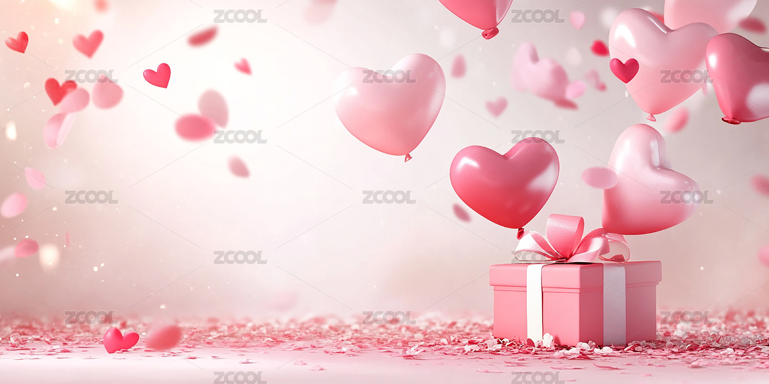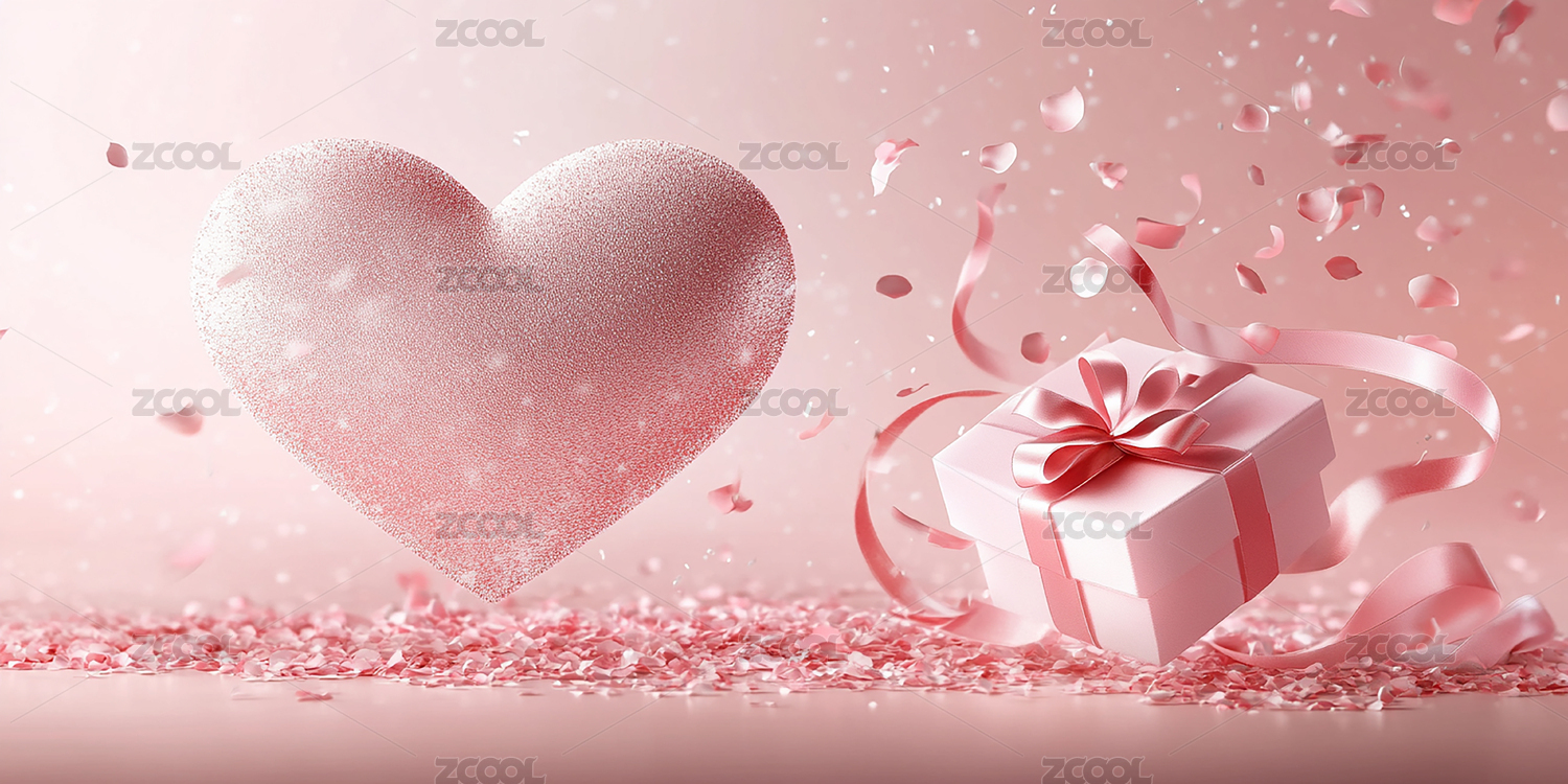 心形礼盒点缀粉红渐变
