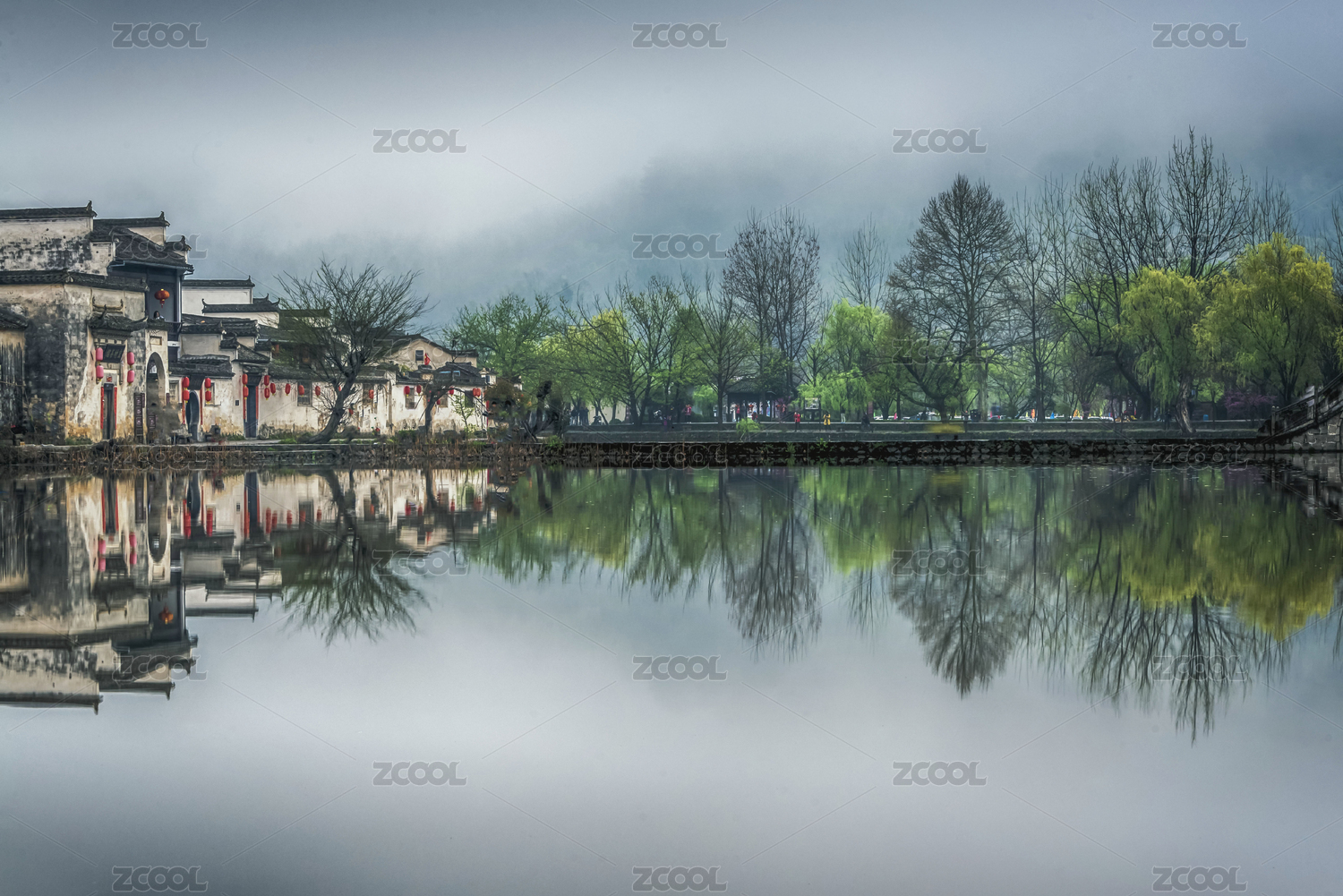 中国,安徽,黄山市,黟县,宏村,春季,春天,南湖,月沼,倒影