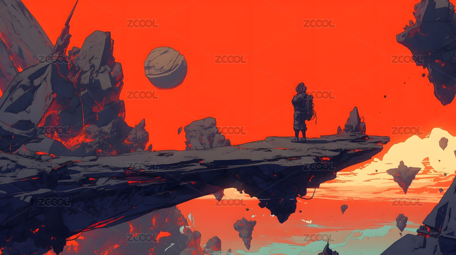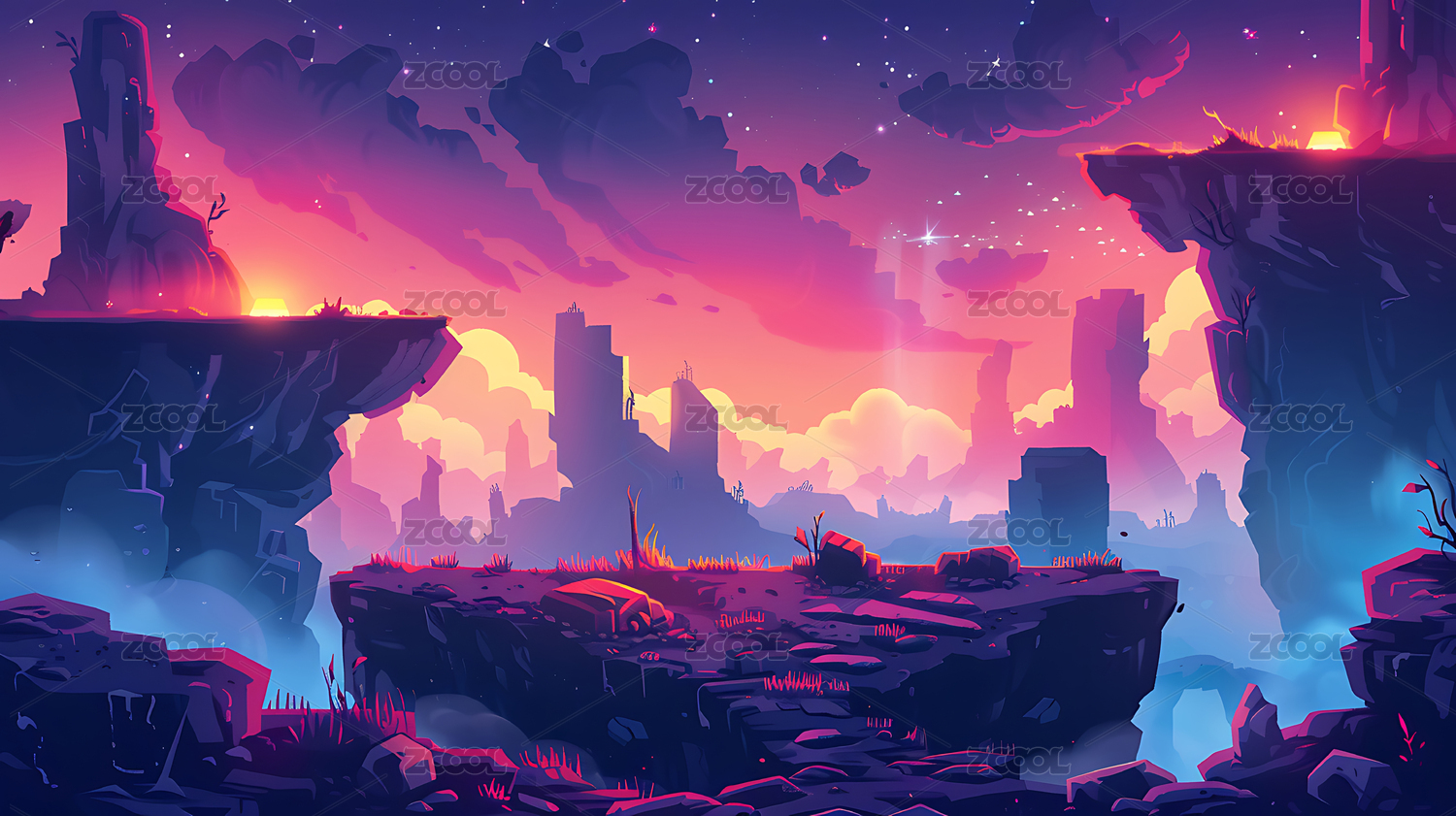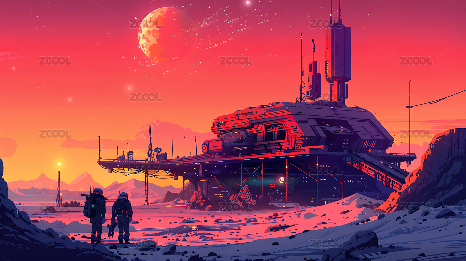 场景,科幻场景,游戏原画,原画场景,影视场景概念设计,影视美术,风景,傍晚,外星球,绘画