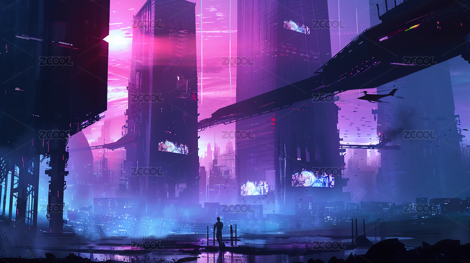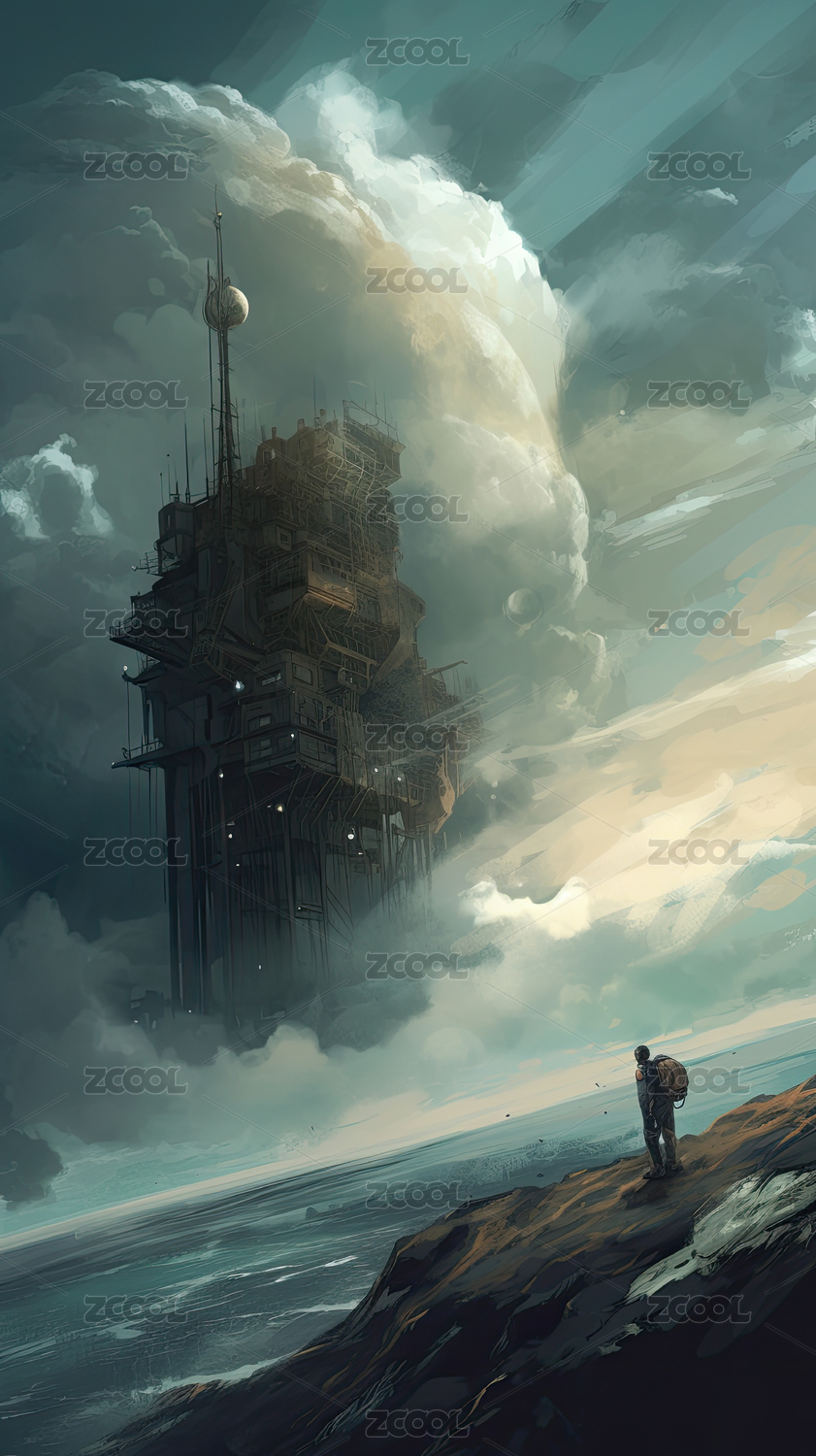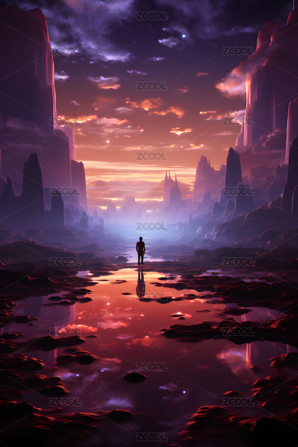 场景,科幻场景,游戏原画,原画场景,影视场景概念设计,影视美术,风景,傍晚,外星球,绘画