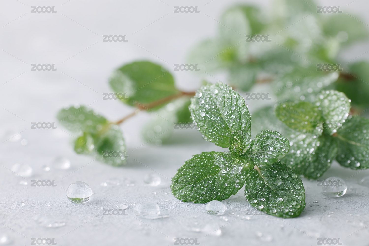 带水珠的嫩绿薄荷叶