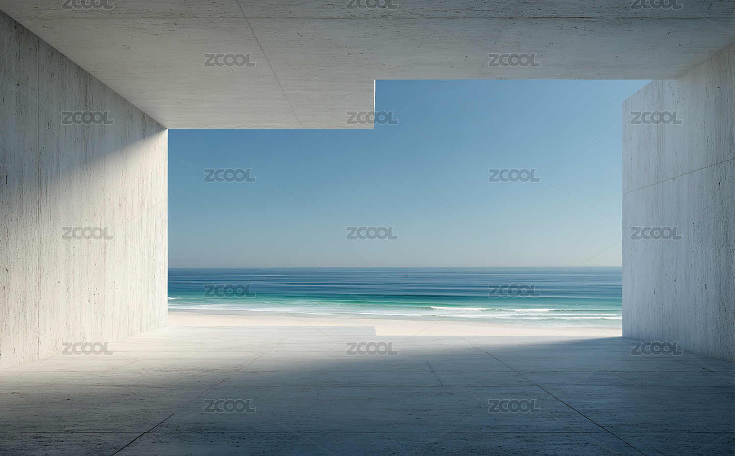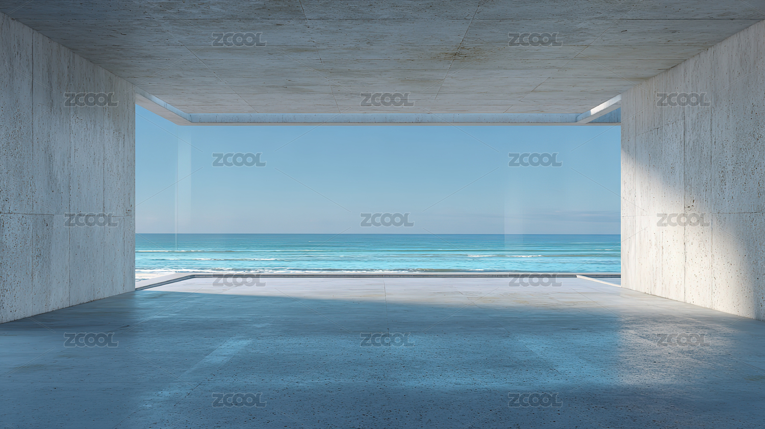 海边混凝土建筑内部视角