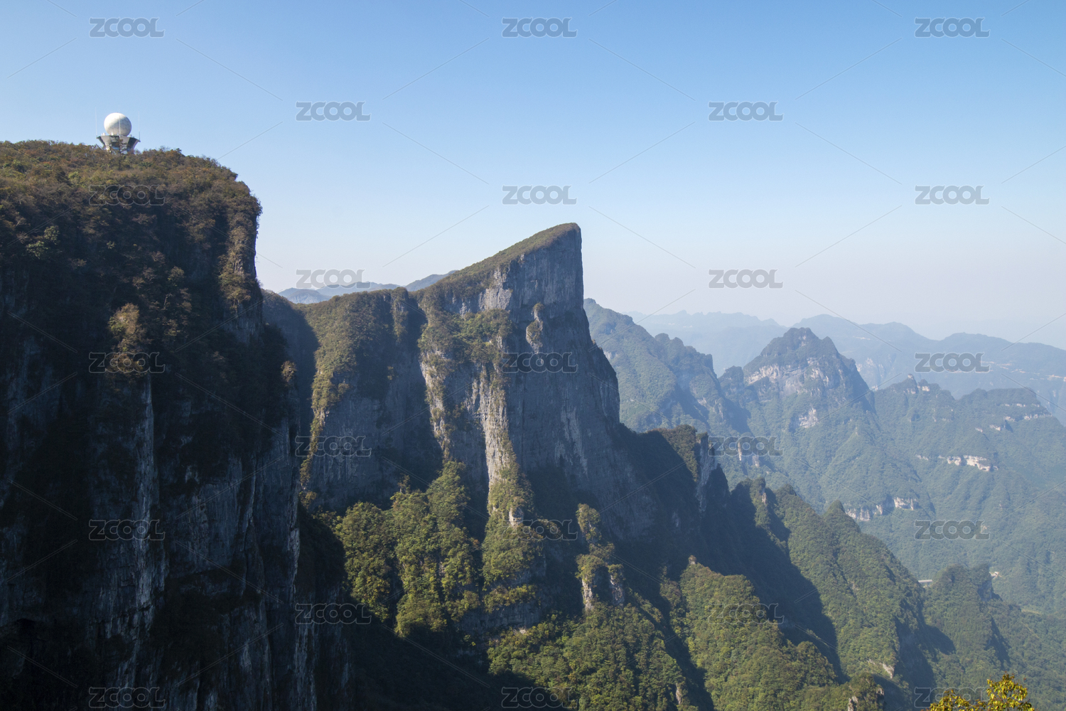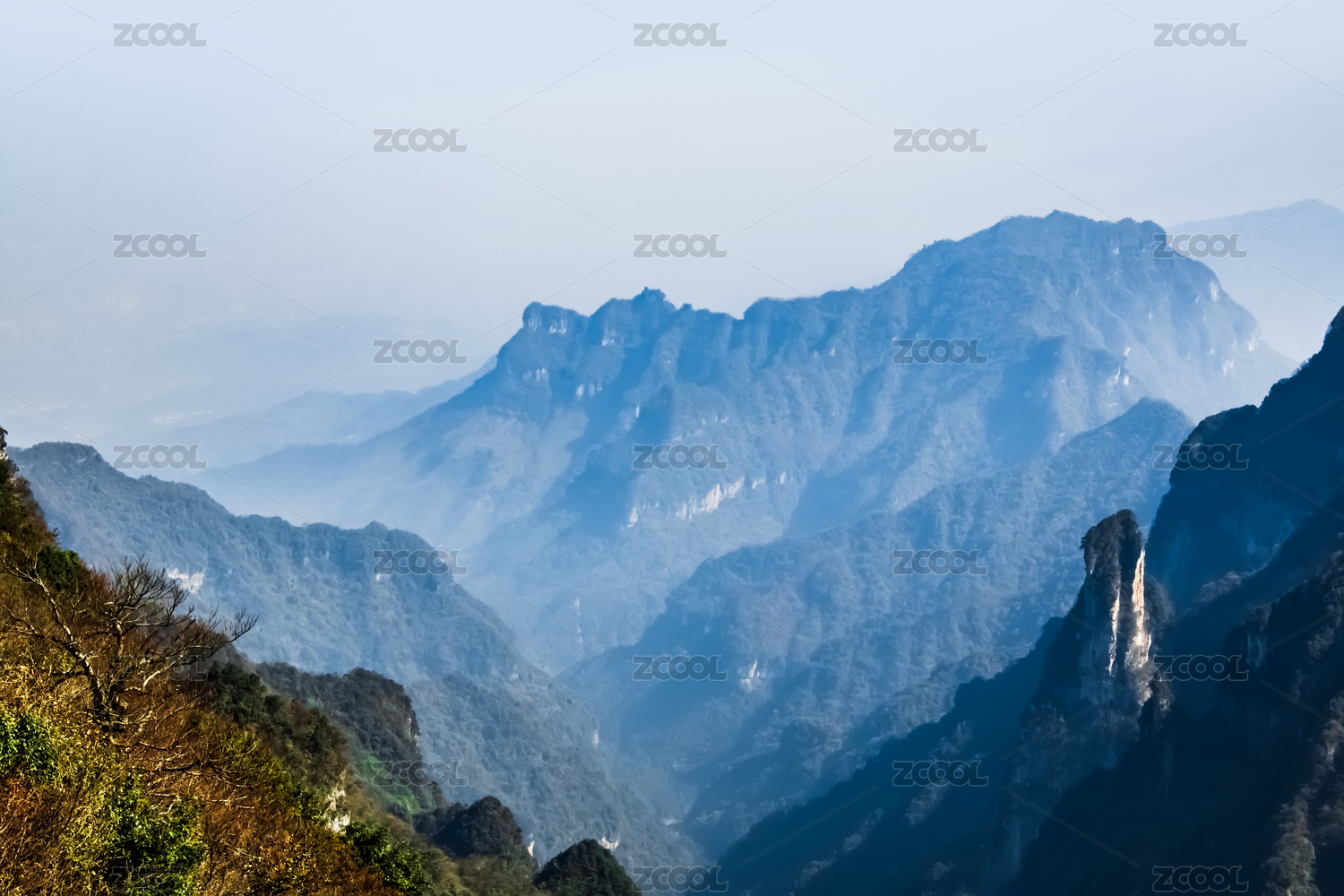 秋天晴空下的中国湖南张家界天门山景区延绵起伏的崇山峻岭